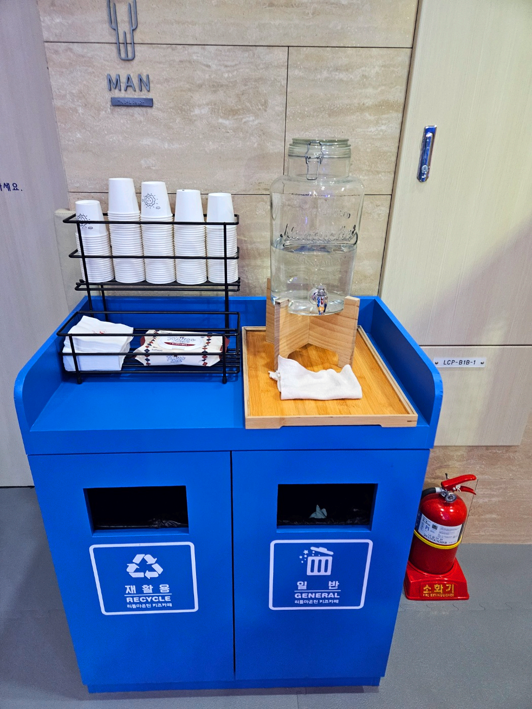 쓰레기 버리는 곳과 생수, 그리고 휴지, 물티슈가