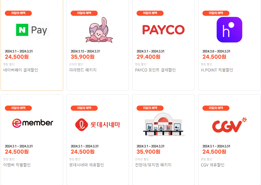 통신사 할인 등 다양한 할인이 있으니