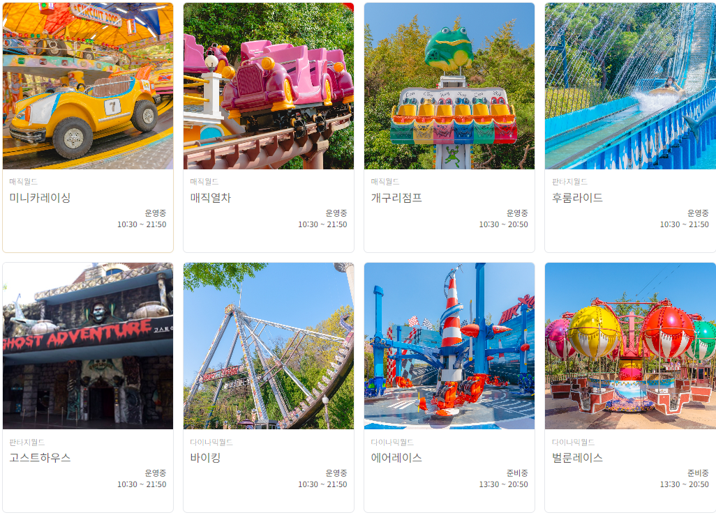 하지만 날짜별로 운영을 하지 않는 놀이기구도 있어서