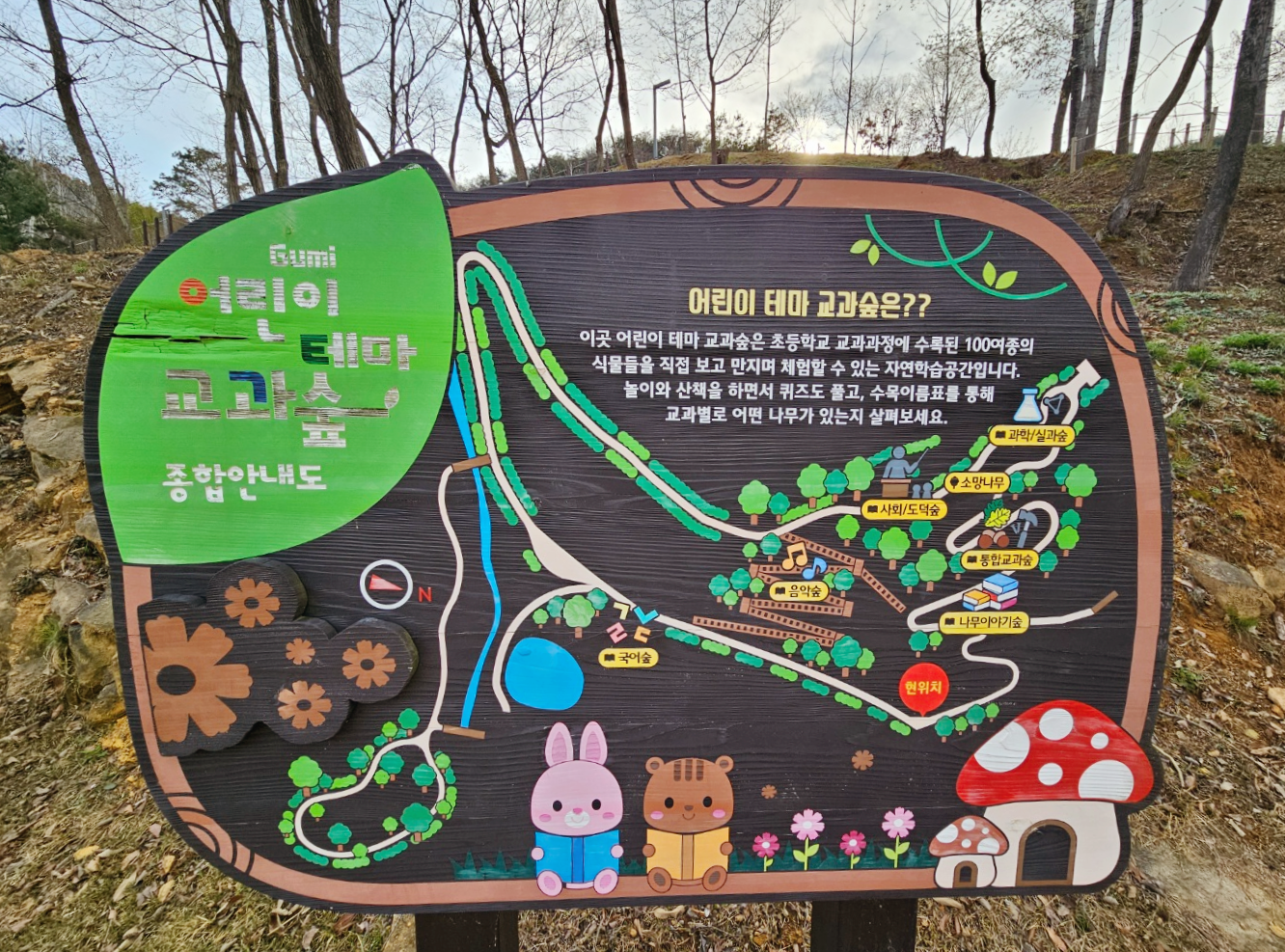 경북 구미 에코랜드 산림문화관의 안내도에요.