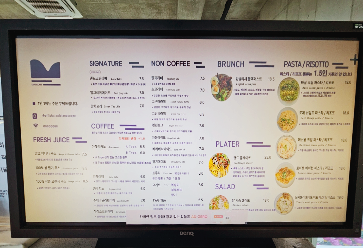 시그니처 메뉴인 랜드크림라떼 7,500원