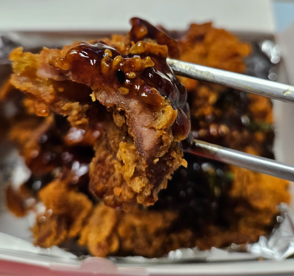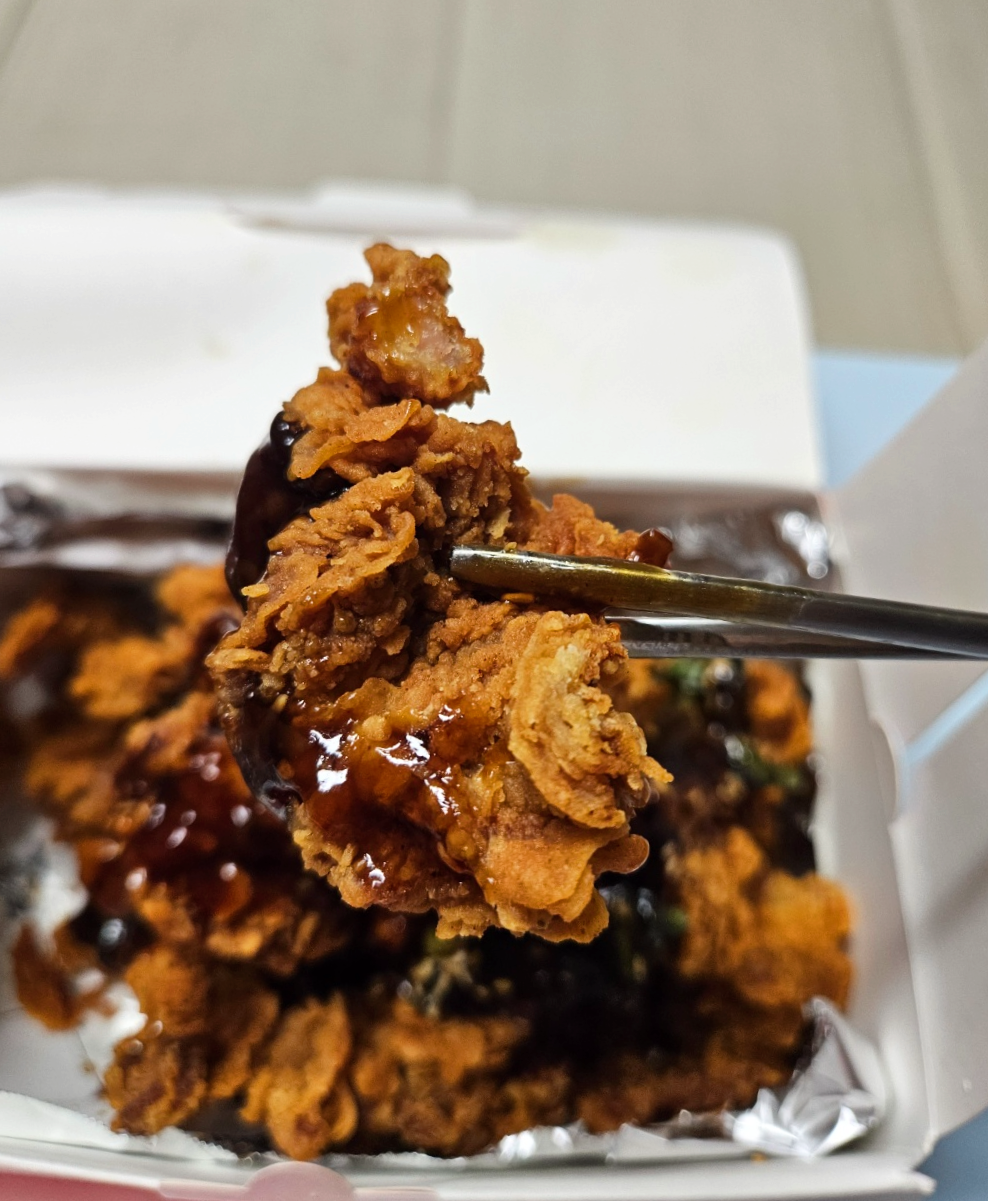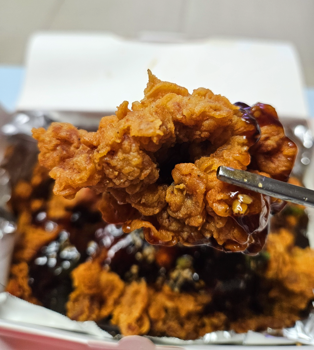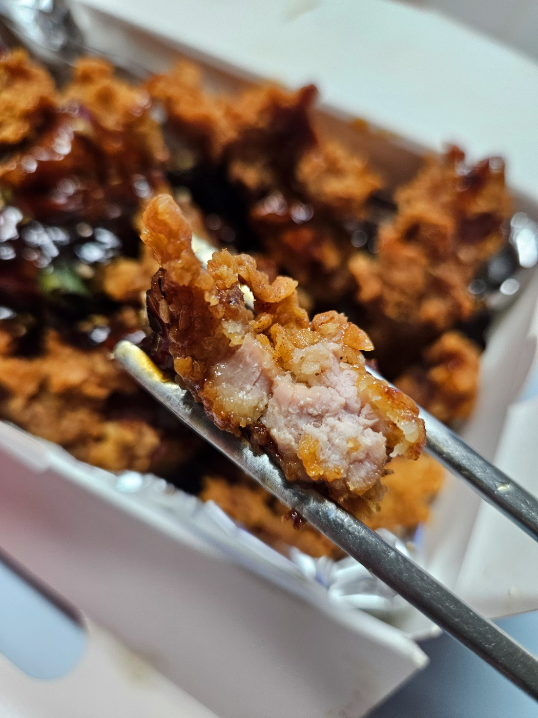 정말 돼지갈비소스맛에 크리스피한 고기튀김이