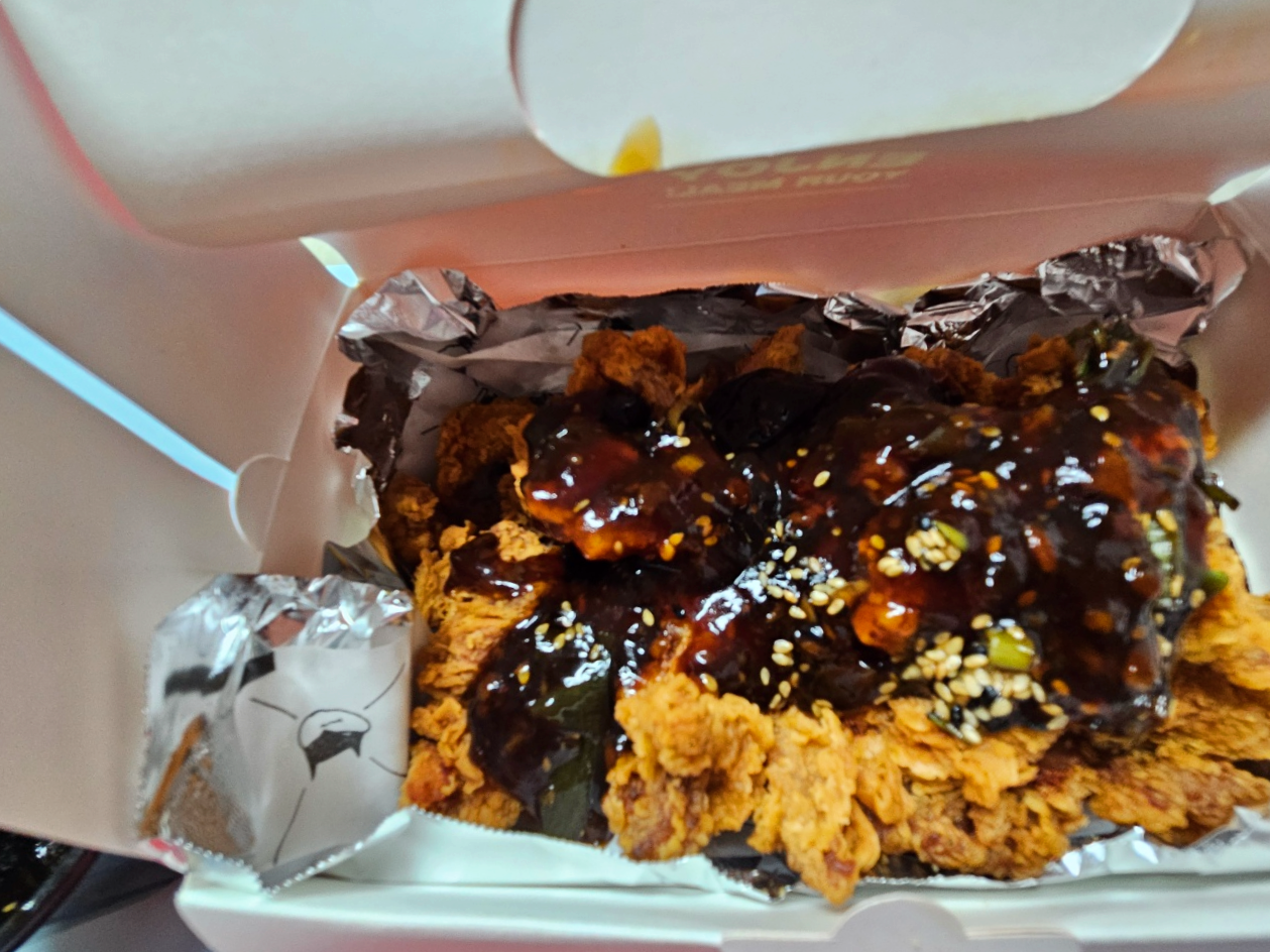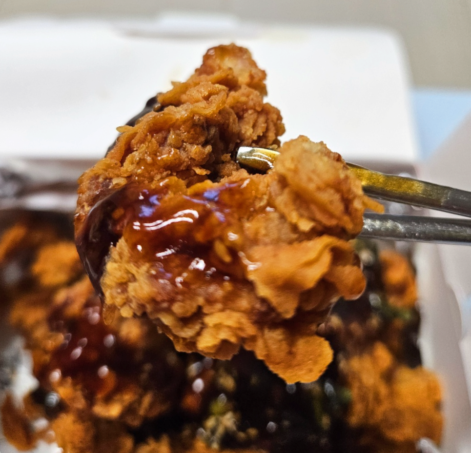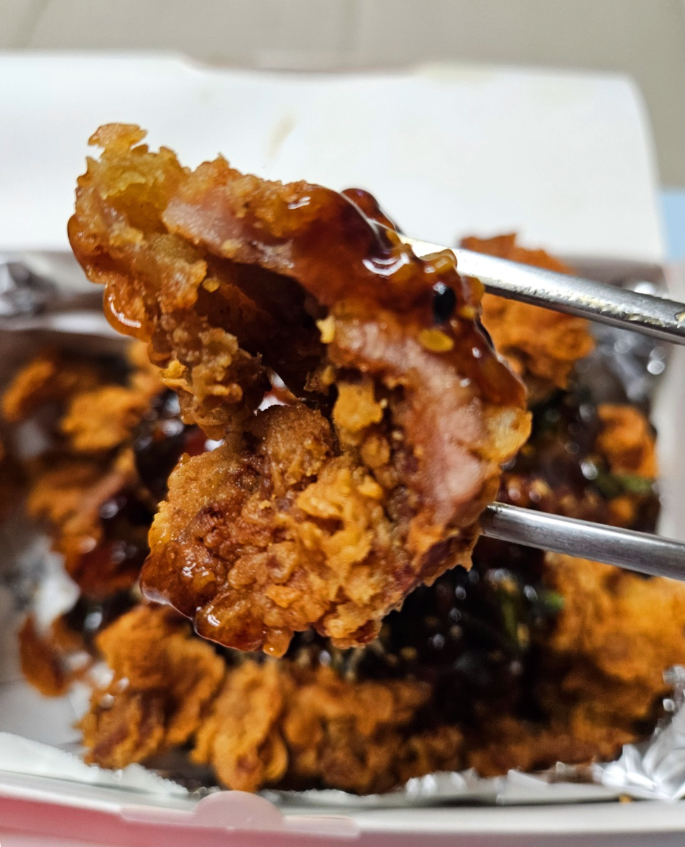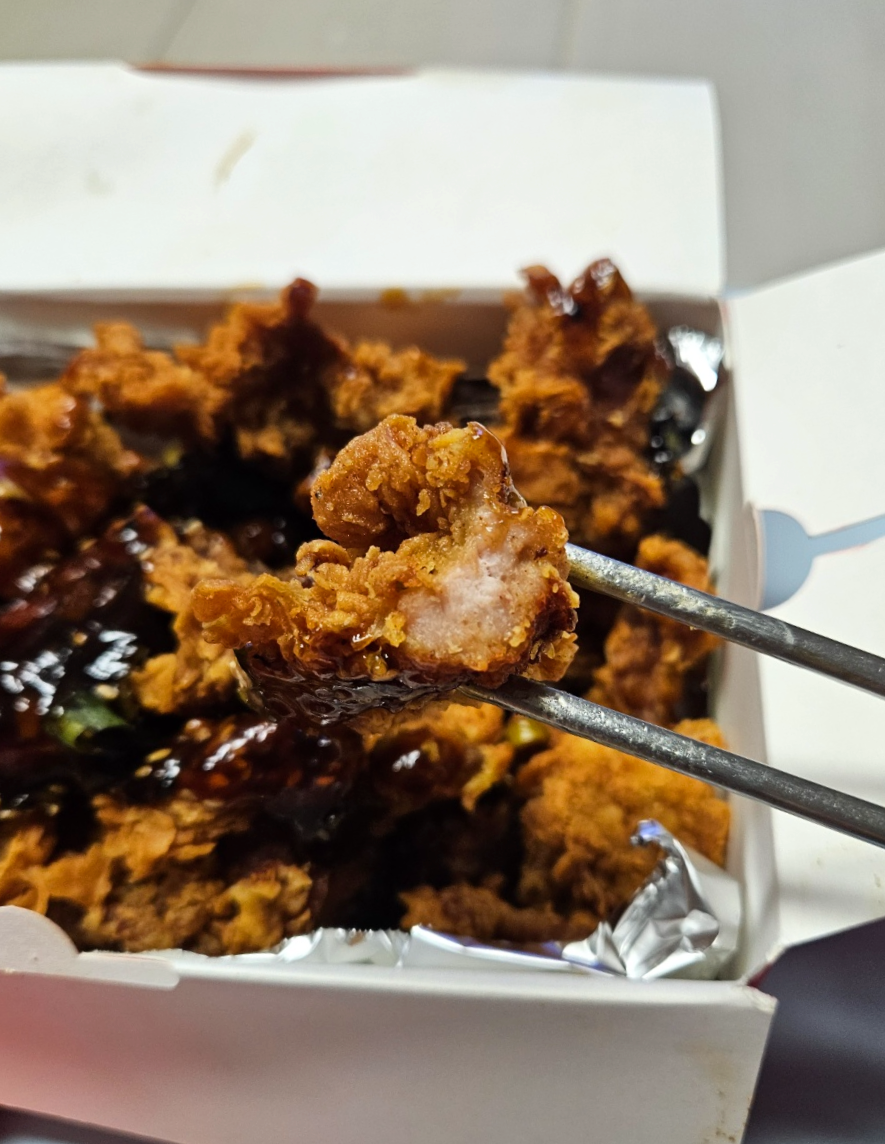 정말 돼지갈비소스맛에 크리스피한 고기튀김이