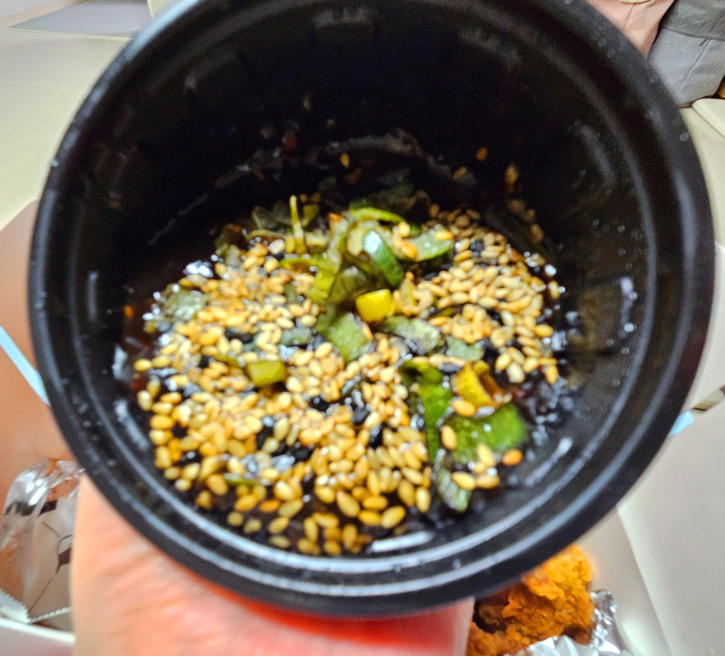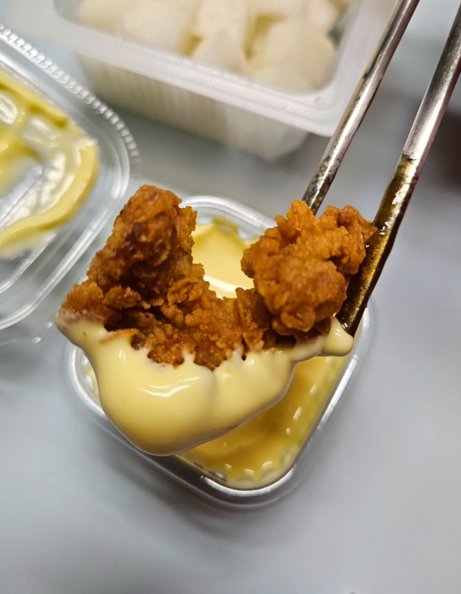 돼지갈비후라이드를 찍어 먹어봤어요. ㅋㅋ