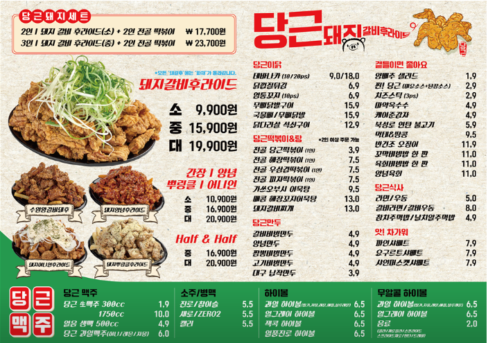 대구 중구 당근돼지갈비후라이드의 주력메뉴인