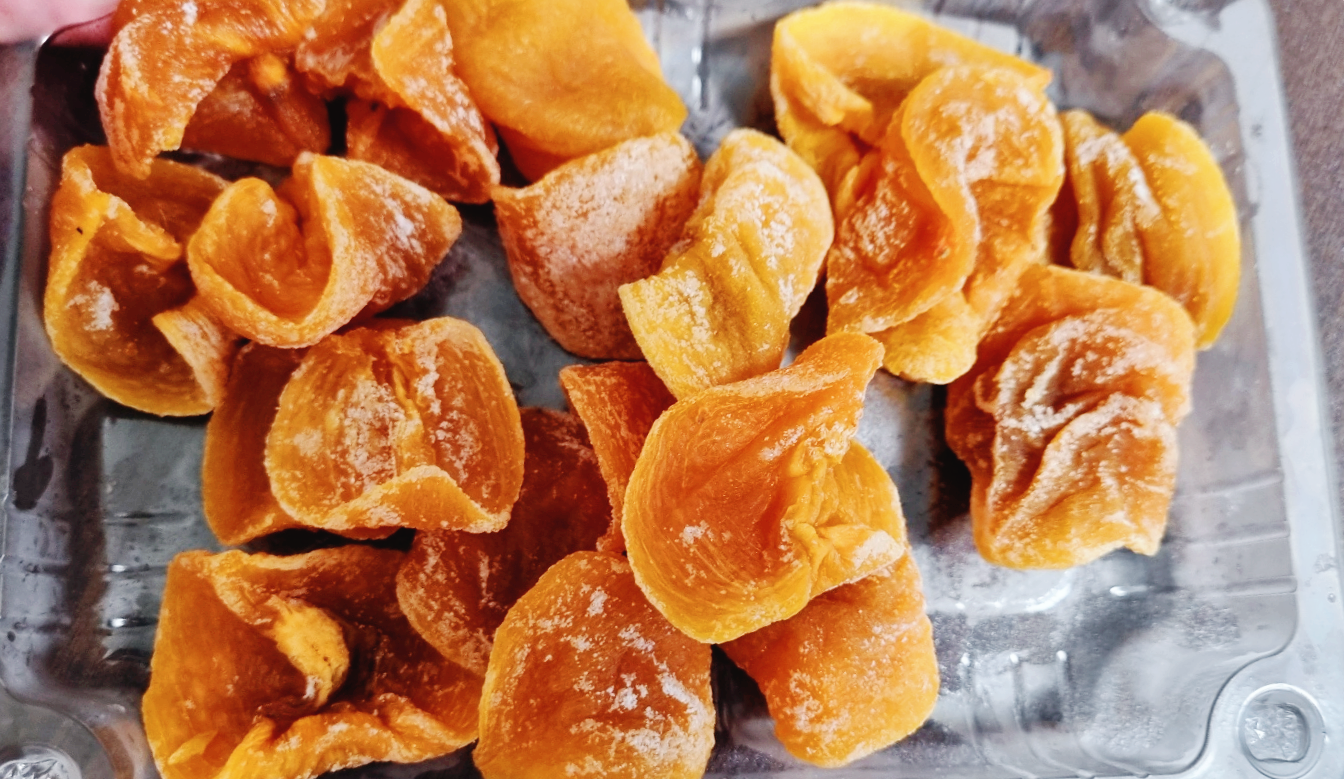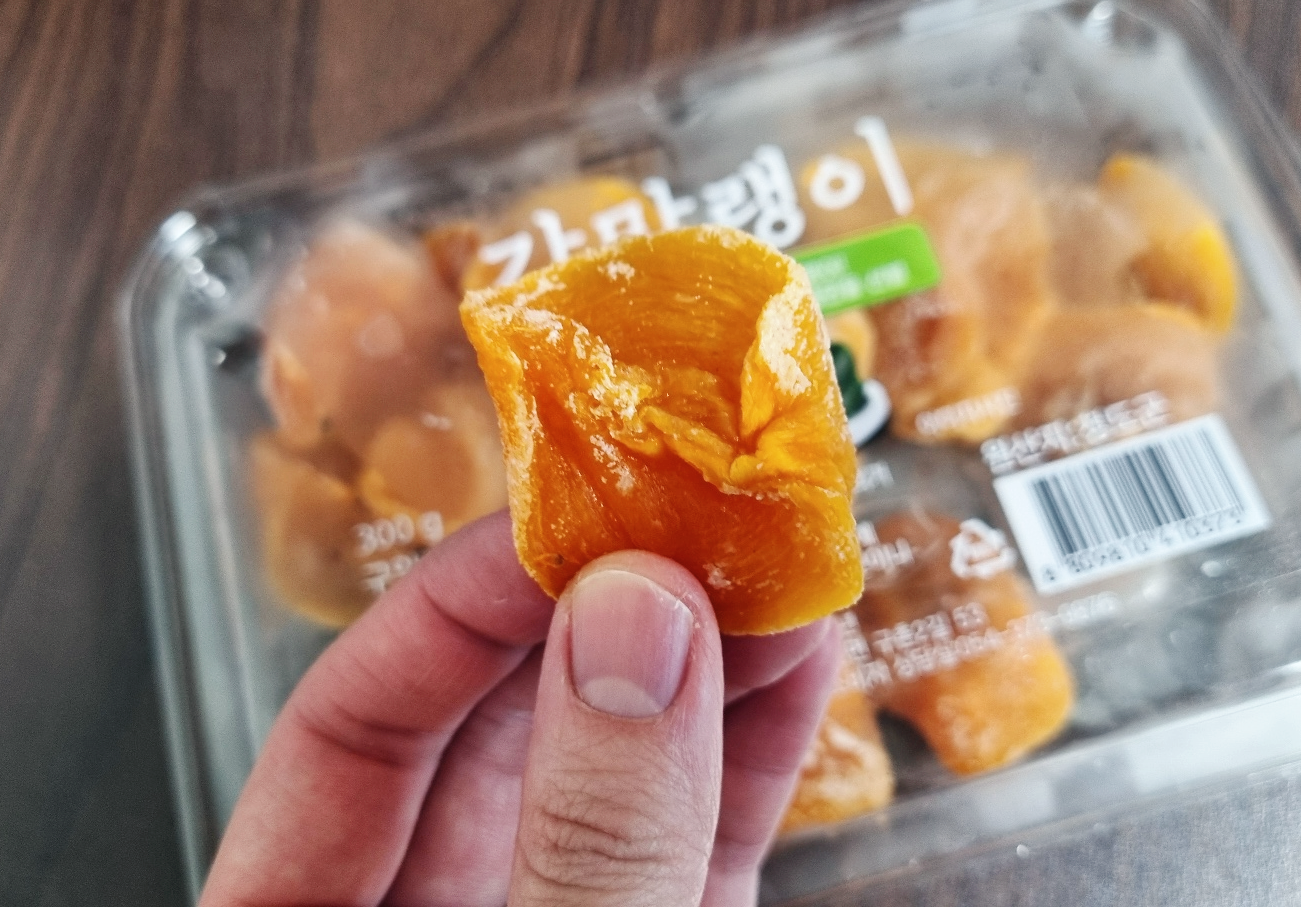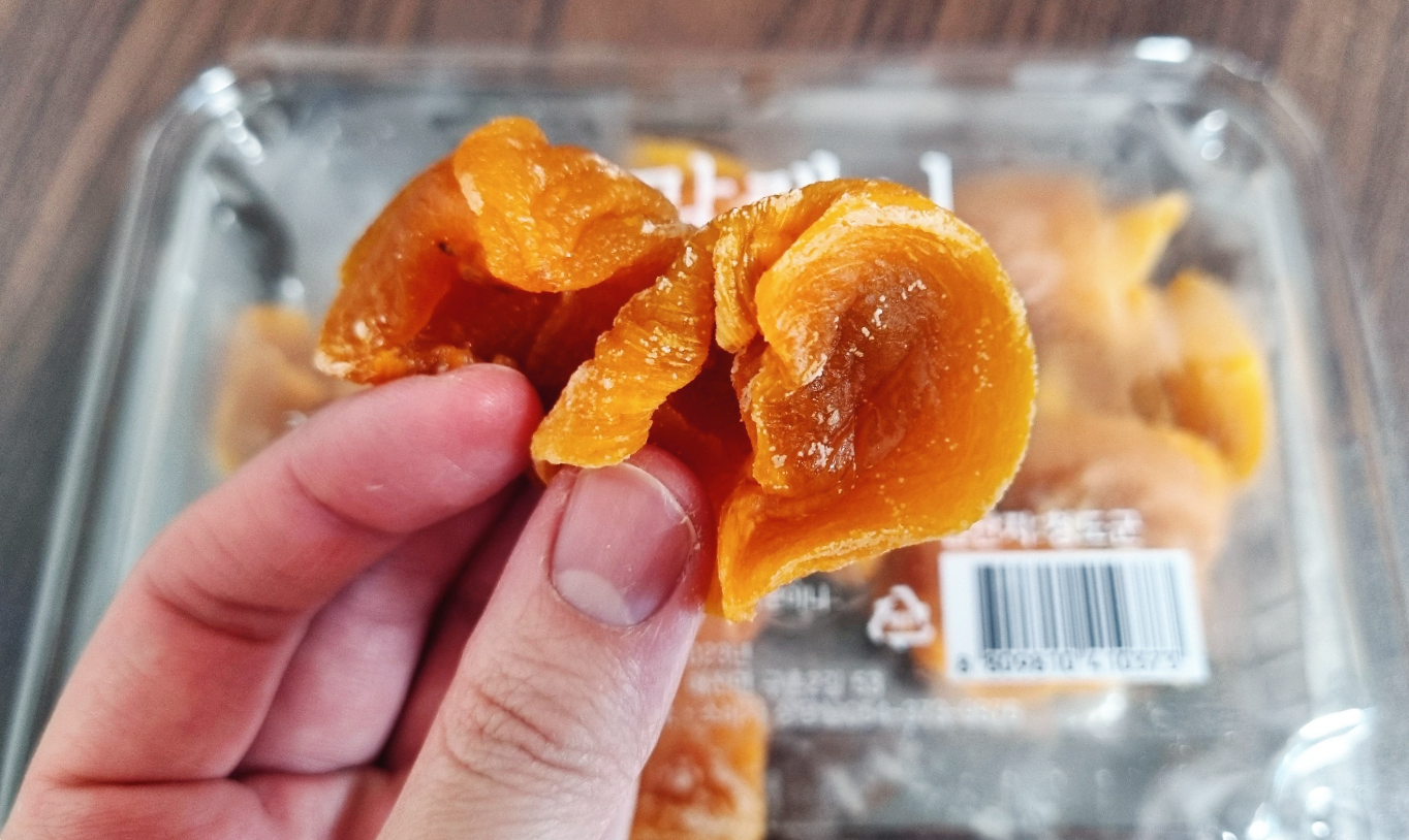 곶감에 비해서 식감이 딱딱하지 않고 부드러우며