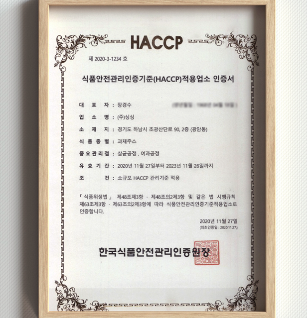 HACCP 인증을 받은 안전하고 위생적인