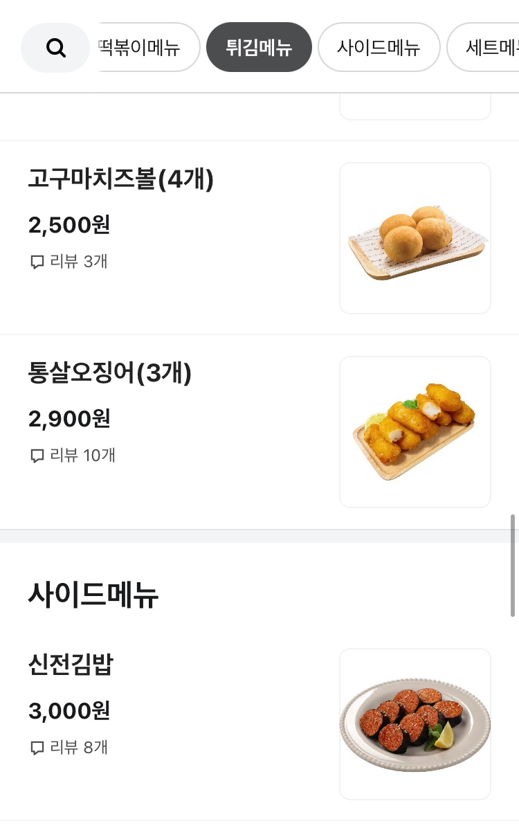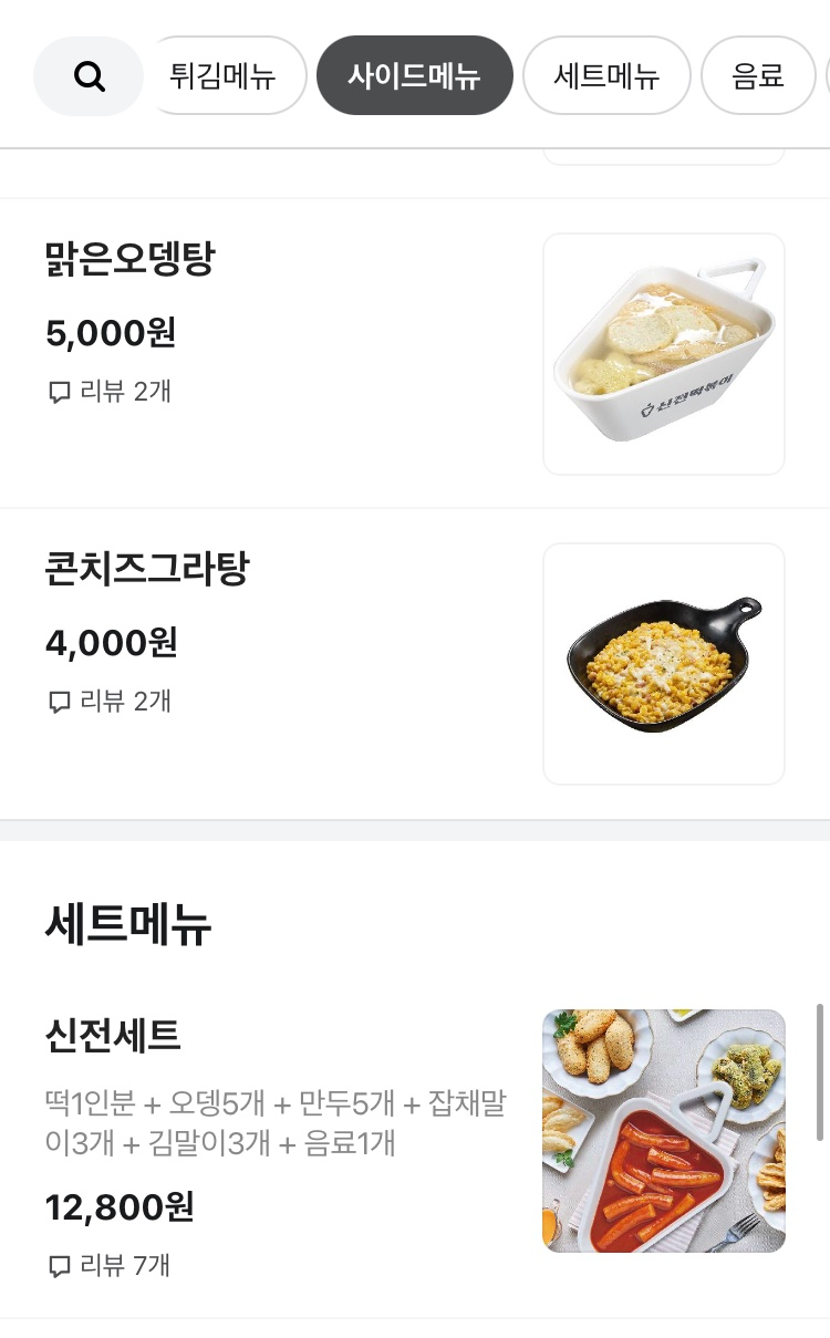 그리고 신전떡볶이 주문할 때 빠질 수 없는