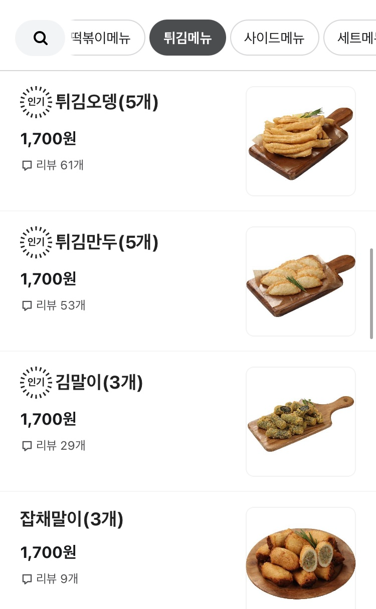 떡볶이에 빠질 수 없는 짝꿍같은 튀김!