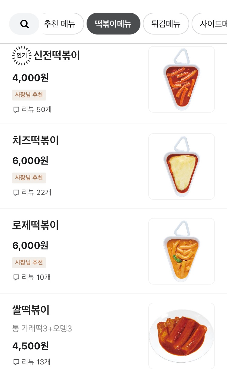 요즘 신전떡볶이 메뉴가 추가된 것도 있고