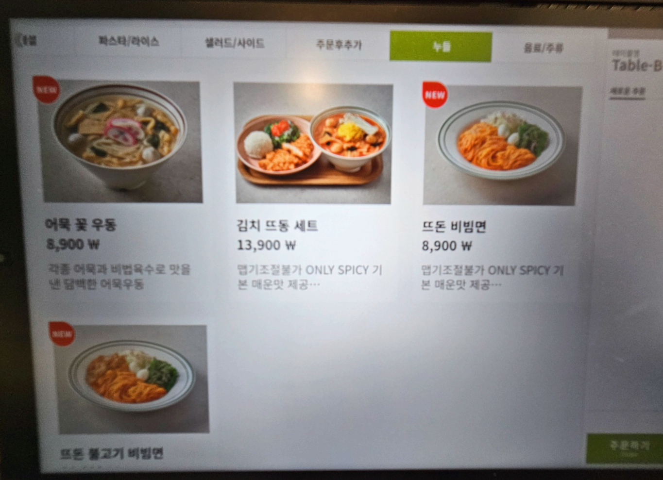 대구 이시아폴리스 아울렛 맛집 뜨돈의 메뉴판이에요.