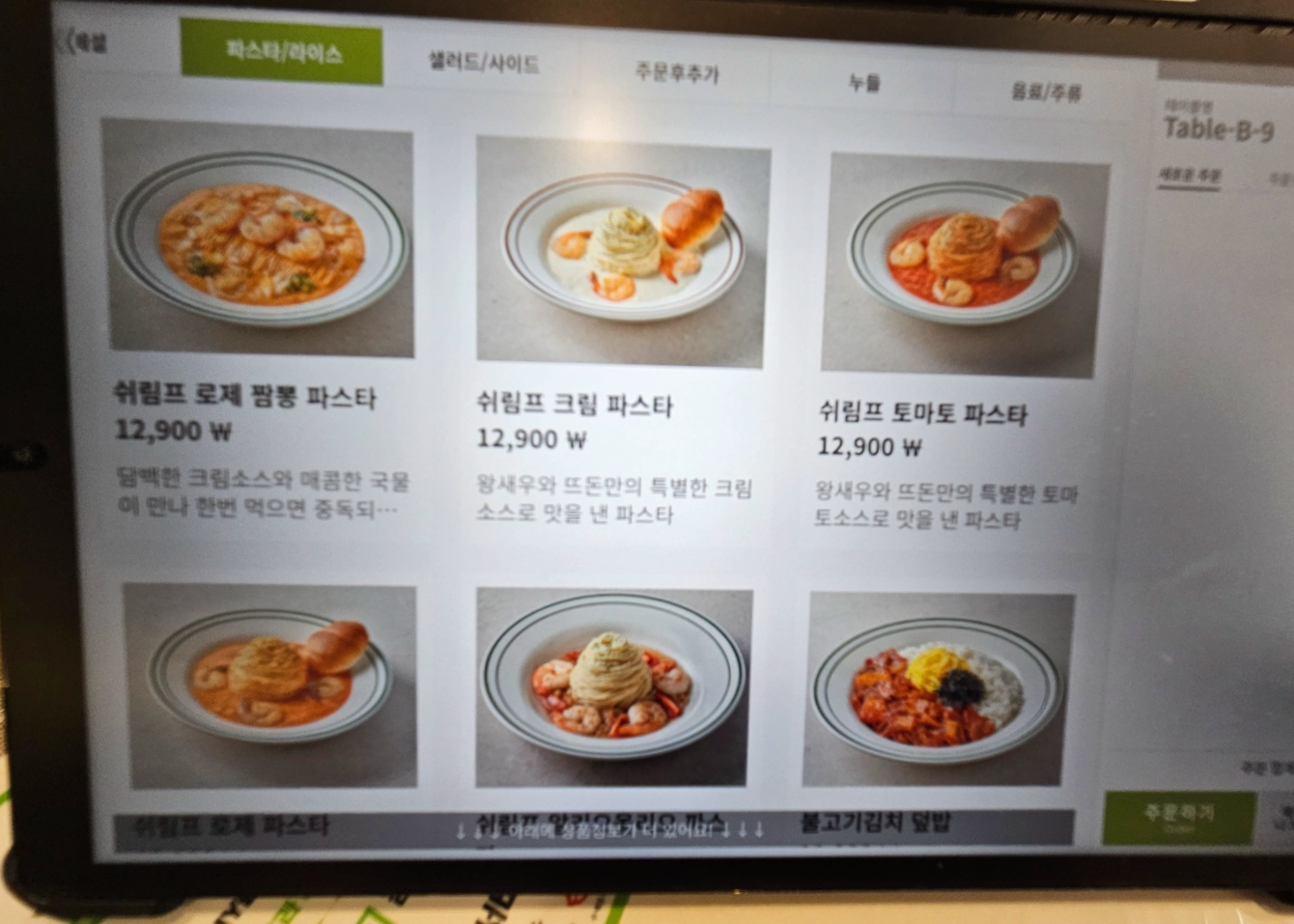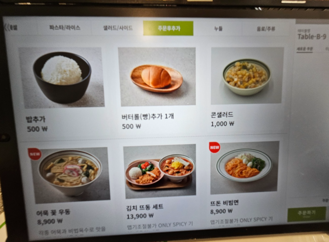 추가메뉴로 밥과 빵, 콘샐러드 등을 추가하실 수 있어요.
