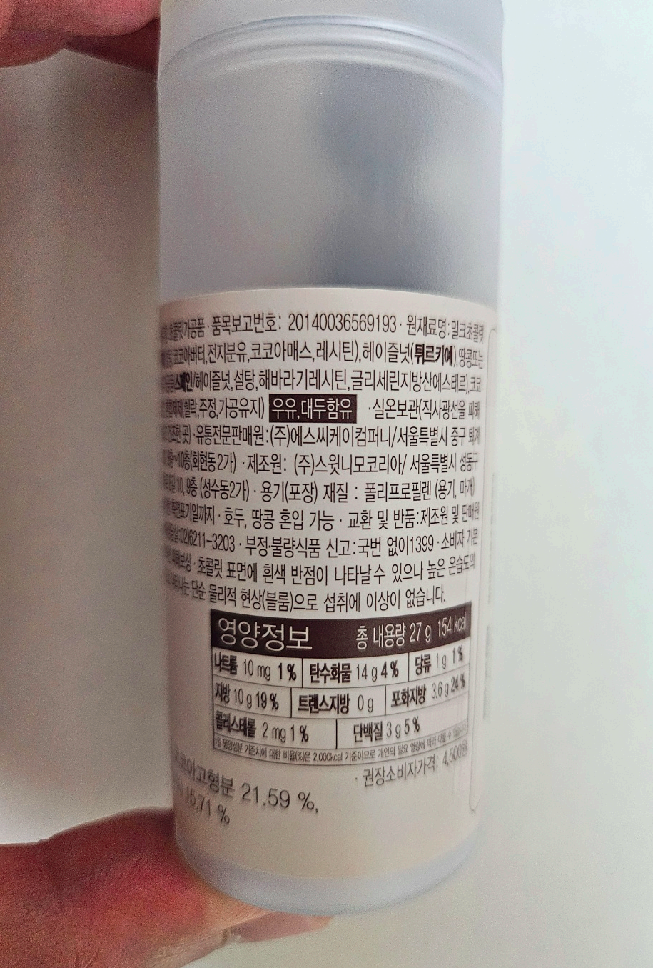 헤이즐넛이 통으로 들어가 있어서 그런가봐요.