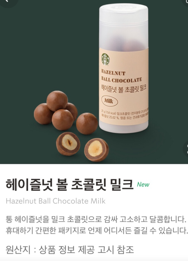 스타벅스 스낵 신메뉴 헤이즐넛 볼 초콜릿 밀크 먹은 후기