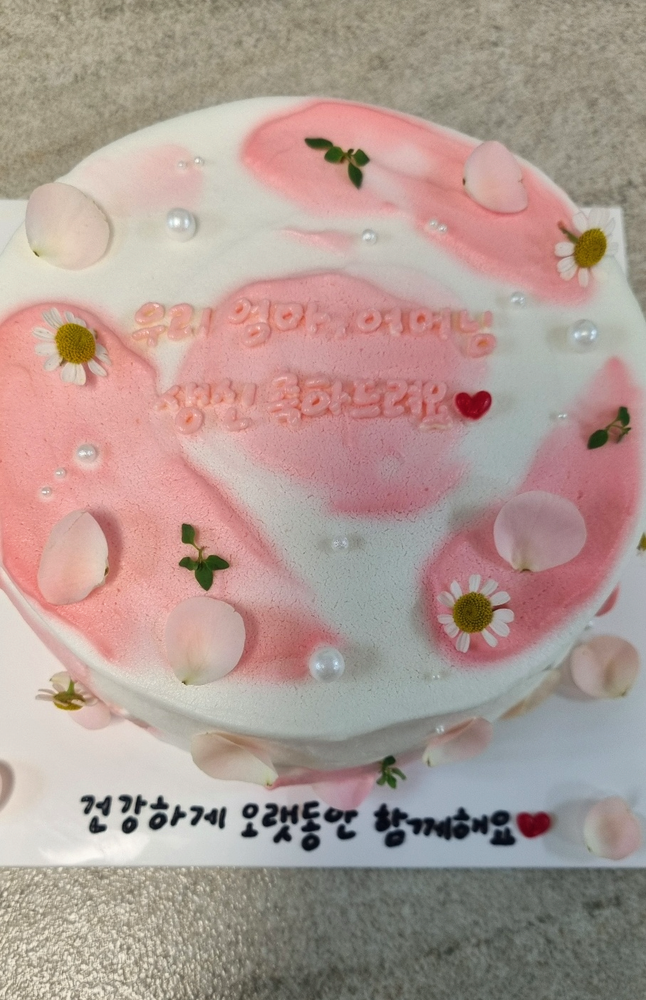 저희 엄마도 케이크 보더니 이렇게 예쁜 케이크는