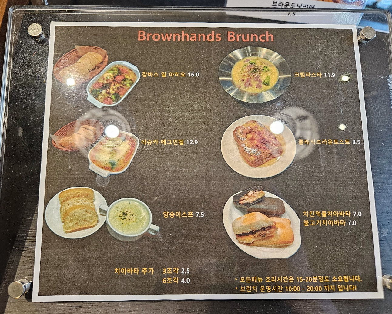 구미 공단 브라운핸즈 카페의 브런치메뉴에요.