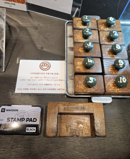 저희는 음료와 빵을 구매하고 1번, 2번 스탬프 2번을