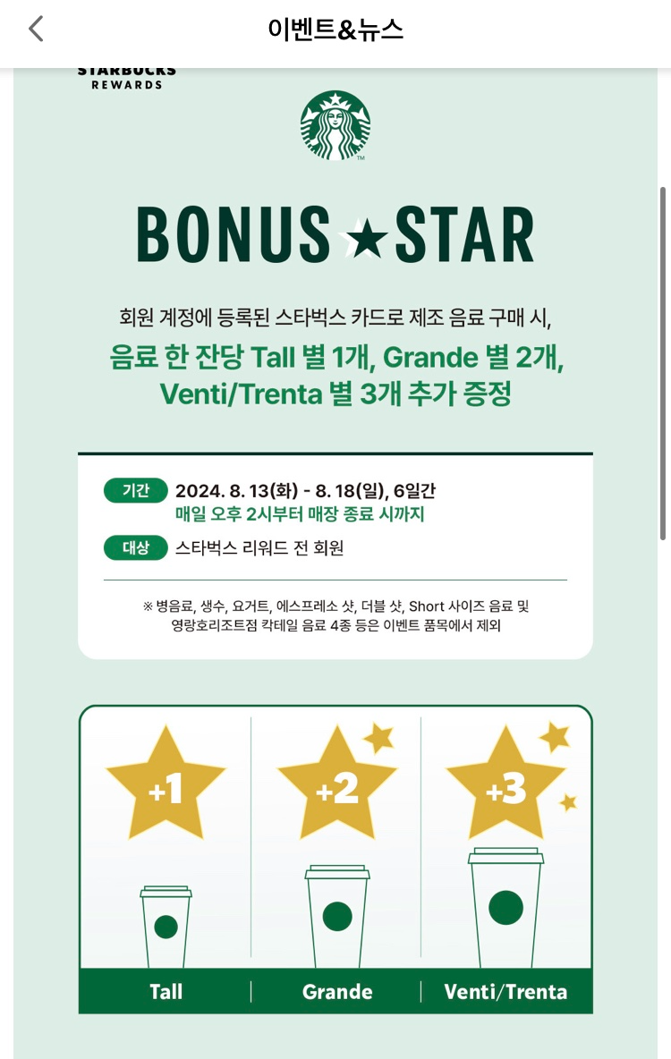 음료주문 시 사이즈별로 별 추가적립 혜택을 받을 수 있는