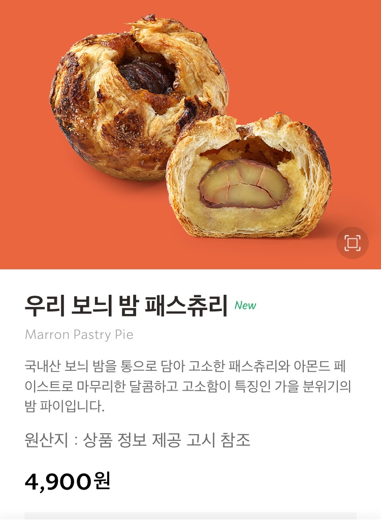 우리보늬 밤 패스츄리 4,900원이고