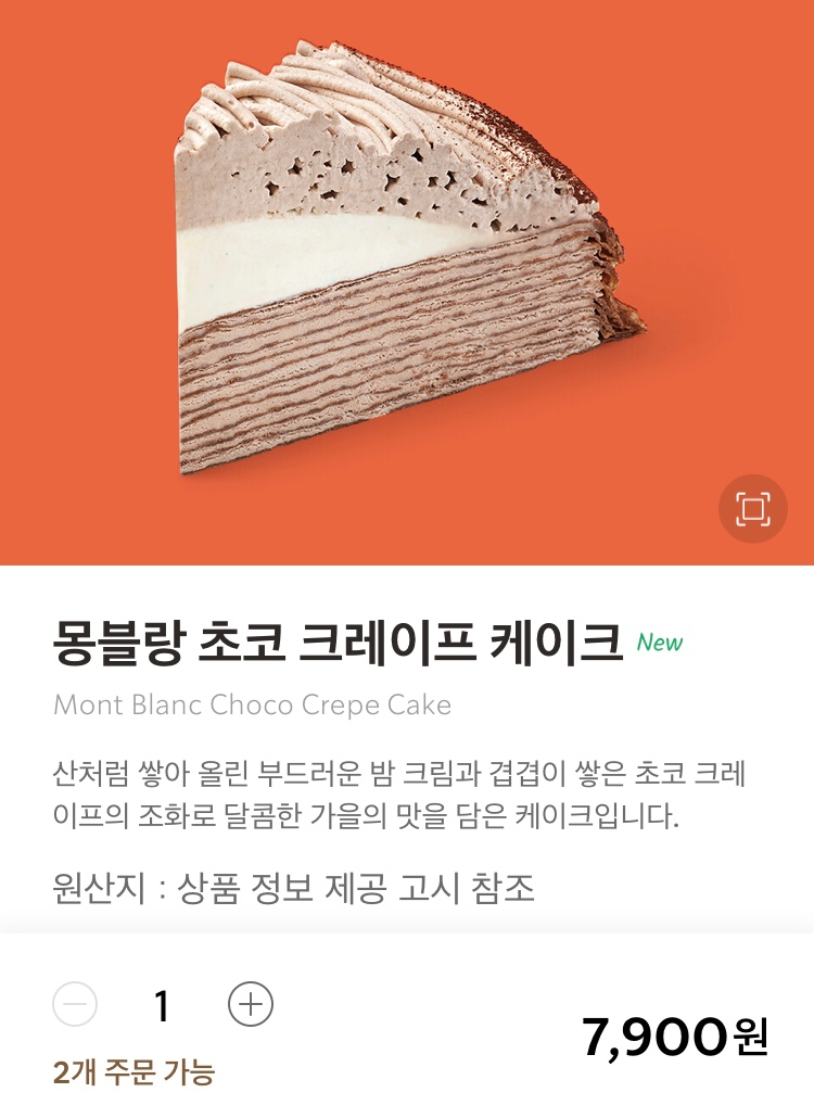 몽블랑 초코 크레이프 케이크 7,900원