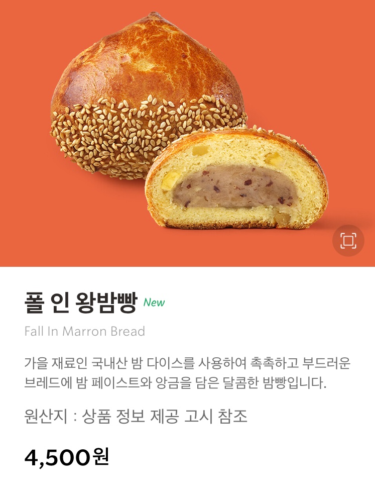폴 인 왕밤빵 4,500원이고