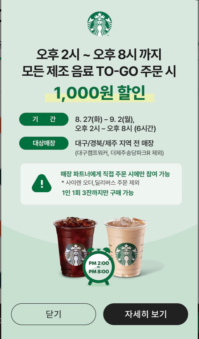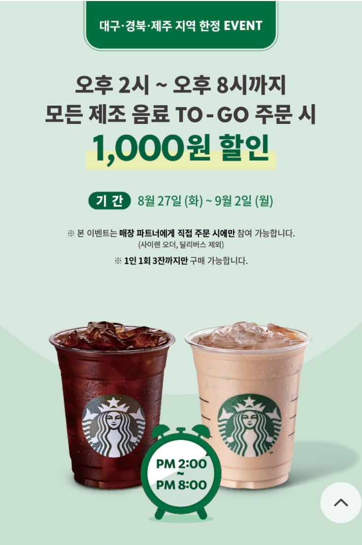 스타벅스 카페에서 대구, 경북지역, 제주지역에서 한정으로