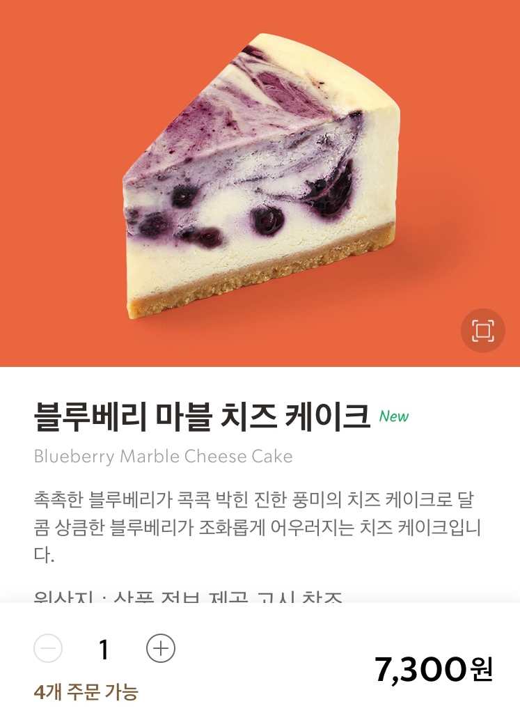 블루베리 마블 치즈 케이크 7,300원으로