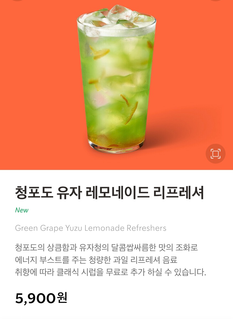 청포도 유자 레모네이드 리프레셔 5,900원
