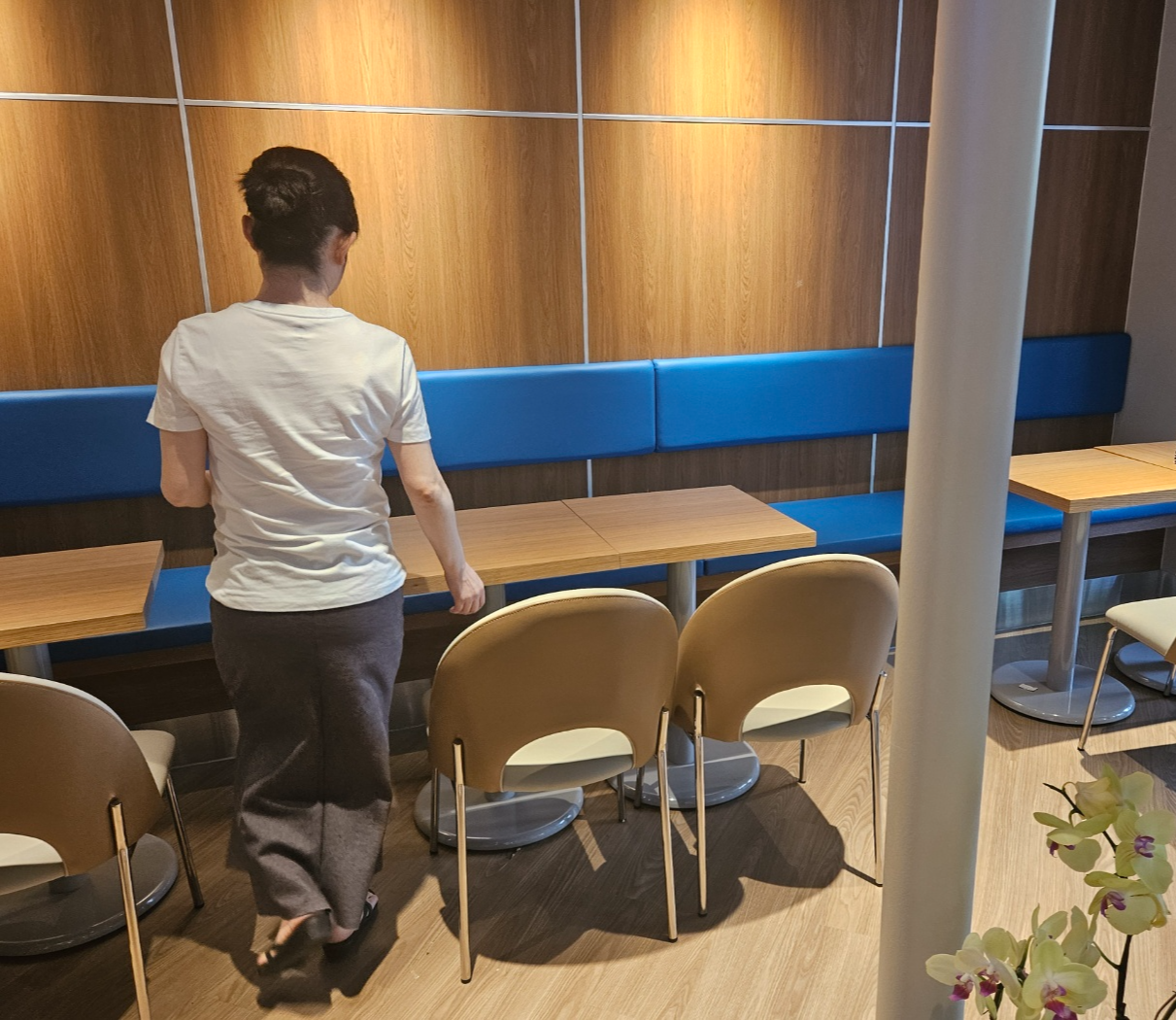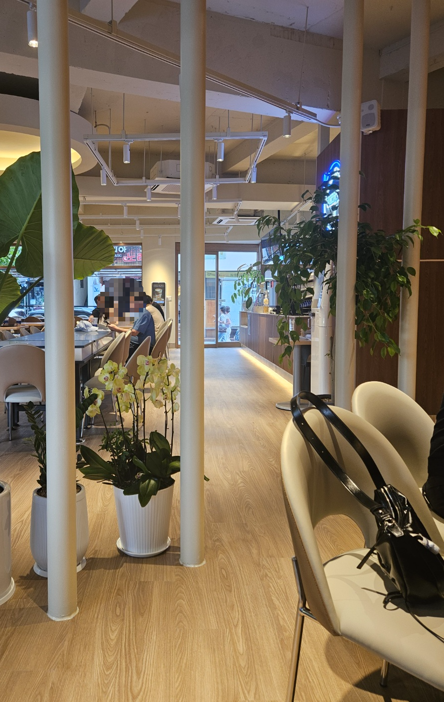 내부 공간은 단체석과 4인석으로 대부분 이루어져 있었고 테이블간의 간격도 넓직넓직하고 의자도 푹신푹신하니 아주 편안해요. 엄청 큰 규모의 카페는 아니지만 넓직한편이었어요.