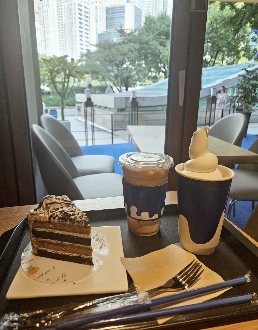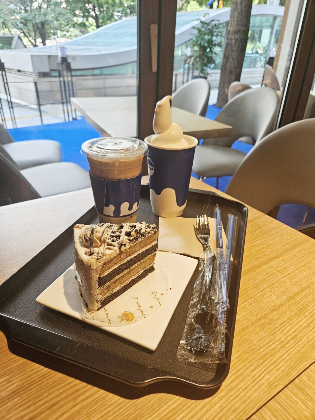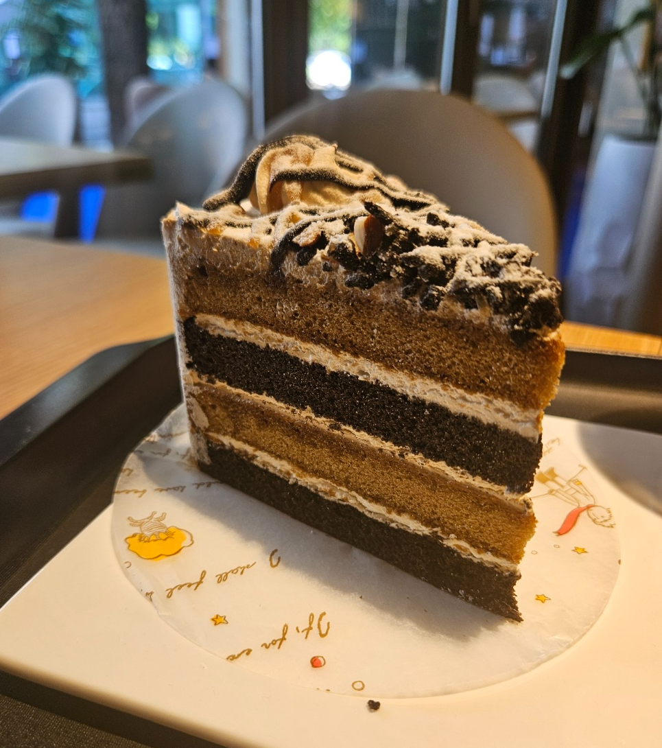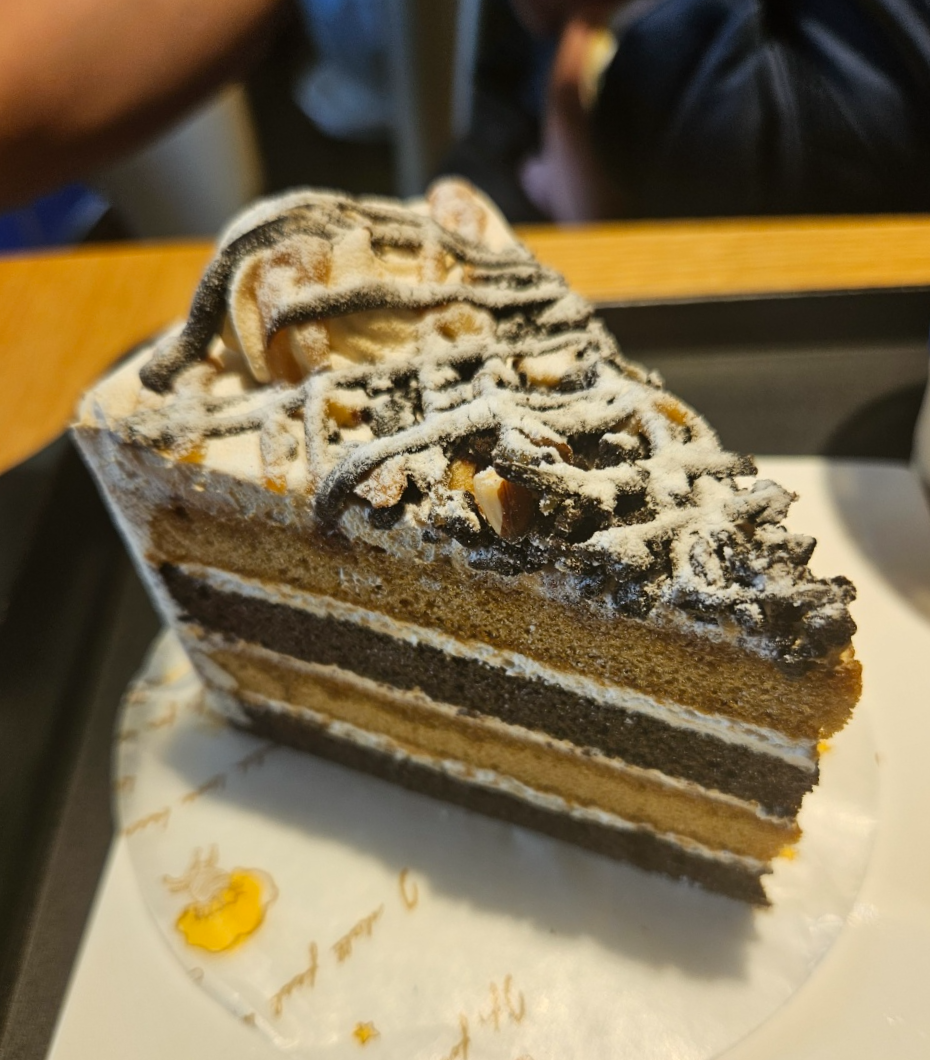 무슨 밀크케이크?라는 조각케이크였는데 생긴것과 다르게 달지 않고 고소하면서도 부드러운 맛이었어요. 조각케이크가 치즈케이크랑 밀크케이크 두가지밖에 없어서 주문했는데 달달한 아이스크림라떼와 먹기에 잘 어울리고 맛있더라고요.