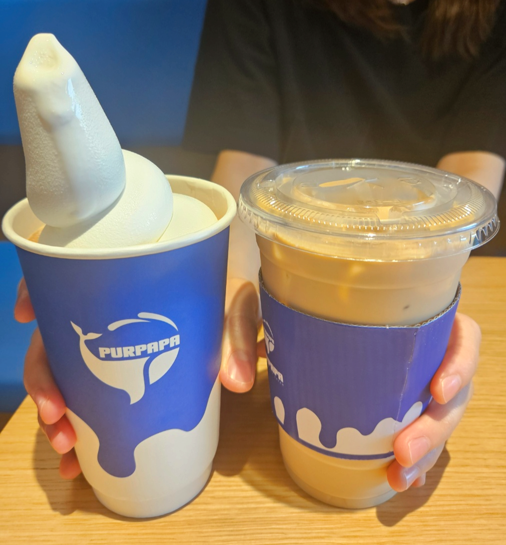 왼쪽이 푸르파파 시그니처라떼이고 오른쪽이 소프트라떼에요. 3,500원인데도 불구하고 커피 사이즈가 어마어마하게 컸어요. 거기다 아이스크림 양좀 보세요...ㅎㅎㅎ 이가격에 이 양이 실화인지 처음에 정말 어리둥절할 정도로 많았어요. ㅋㅋ