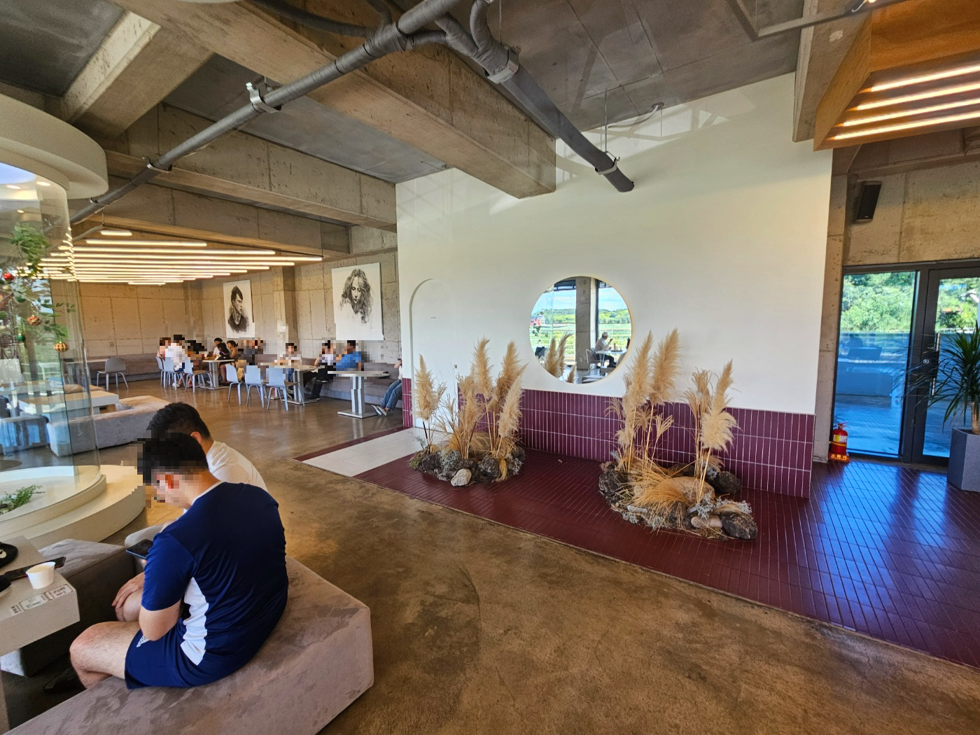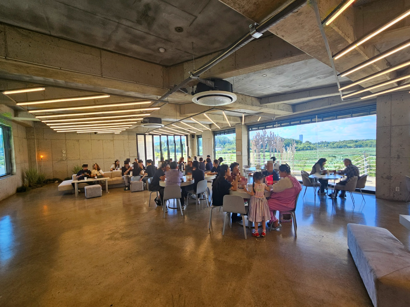 이곳은 경산 대형베이커리카페 월화수카페의 2층 내부모습이에요. 2층은 1층과는 완전 다른 분위기였어요. 통창으로 보이는 산과 나무뷰가 마음을 진정시켜주고 힐링시켜주는 느낌이에요. ㅎㅎ 1층은 수유실과 여자화장실만 있다면 2층은 남여화장실이 모두 있고 곳곳에 사진을 찍기 좋은 공간이 만들어져 있어요. 테이블과 좌석도 훨~씬 많고 푹신한 소파로 되어 있어서 편안하게 쉬기 좋았어요.