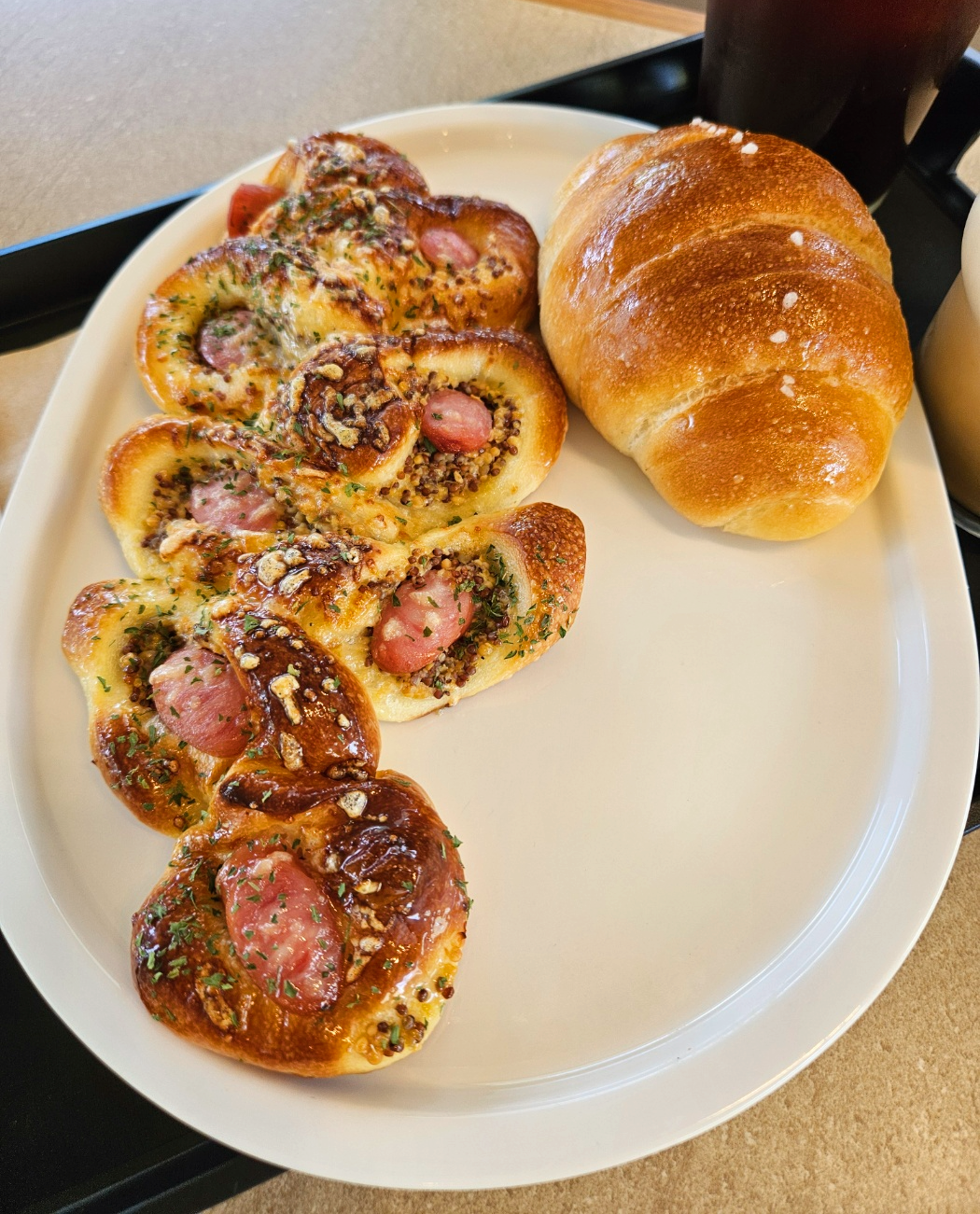 소금빵도 소금빵 특유의 짭짤고소한 맛보다는 달달한맛이 더 강했고 소시지빵은 무슨 씨드?가루?같은게 있어서 개인적으로는 별로였어요.