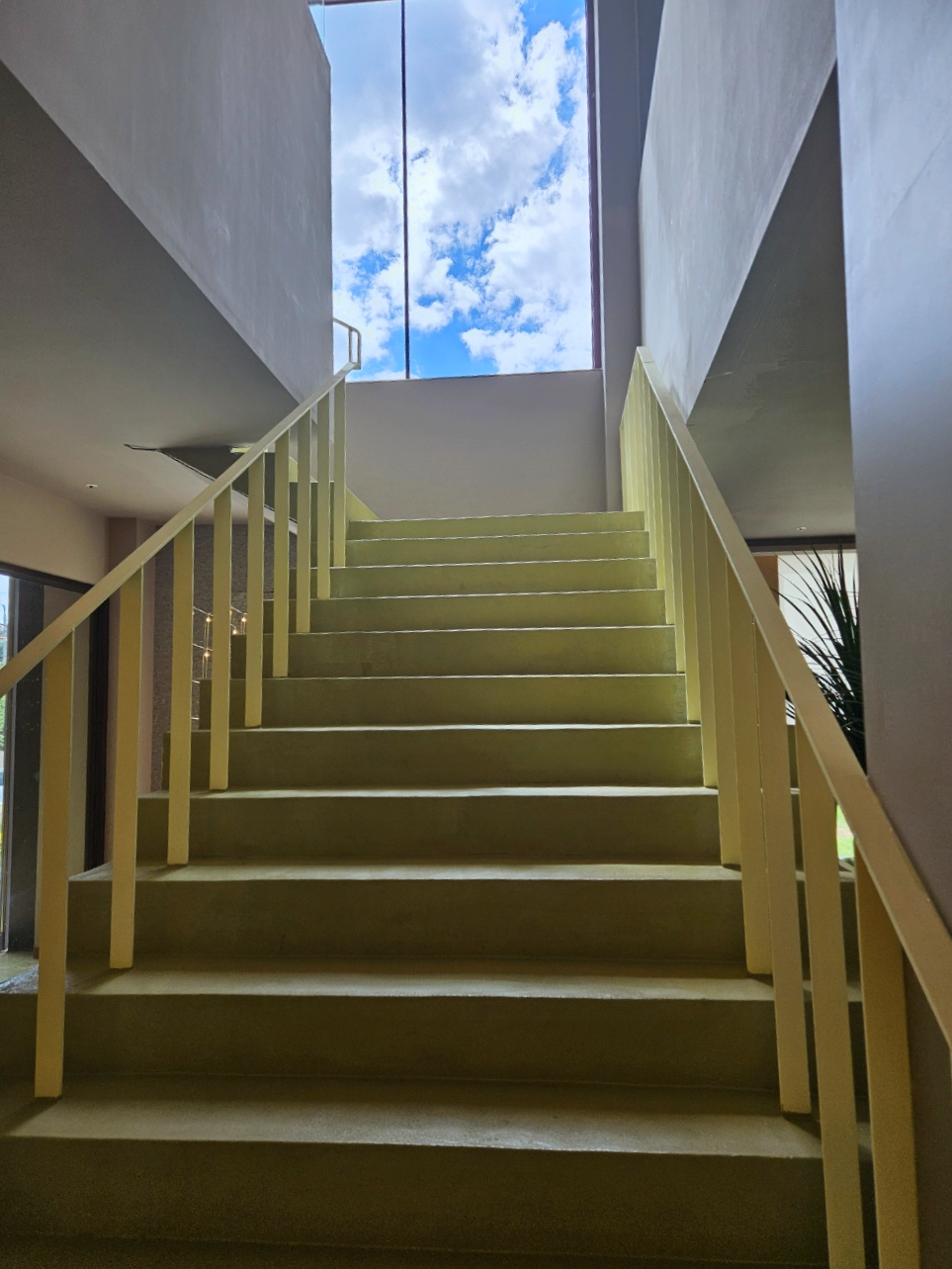 카페 2층으로 올라가는 계단에도 통뷰가 있어서 푸른 하늘과 산을 올려다볼 수 있어서 기분이 좋아지는 곳이었어요.