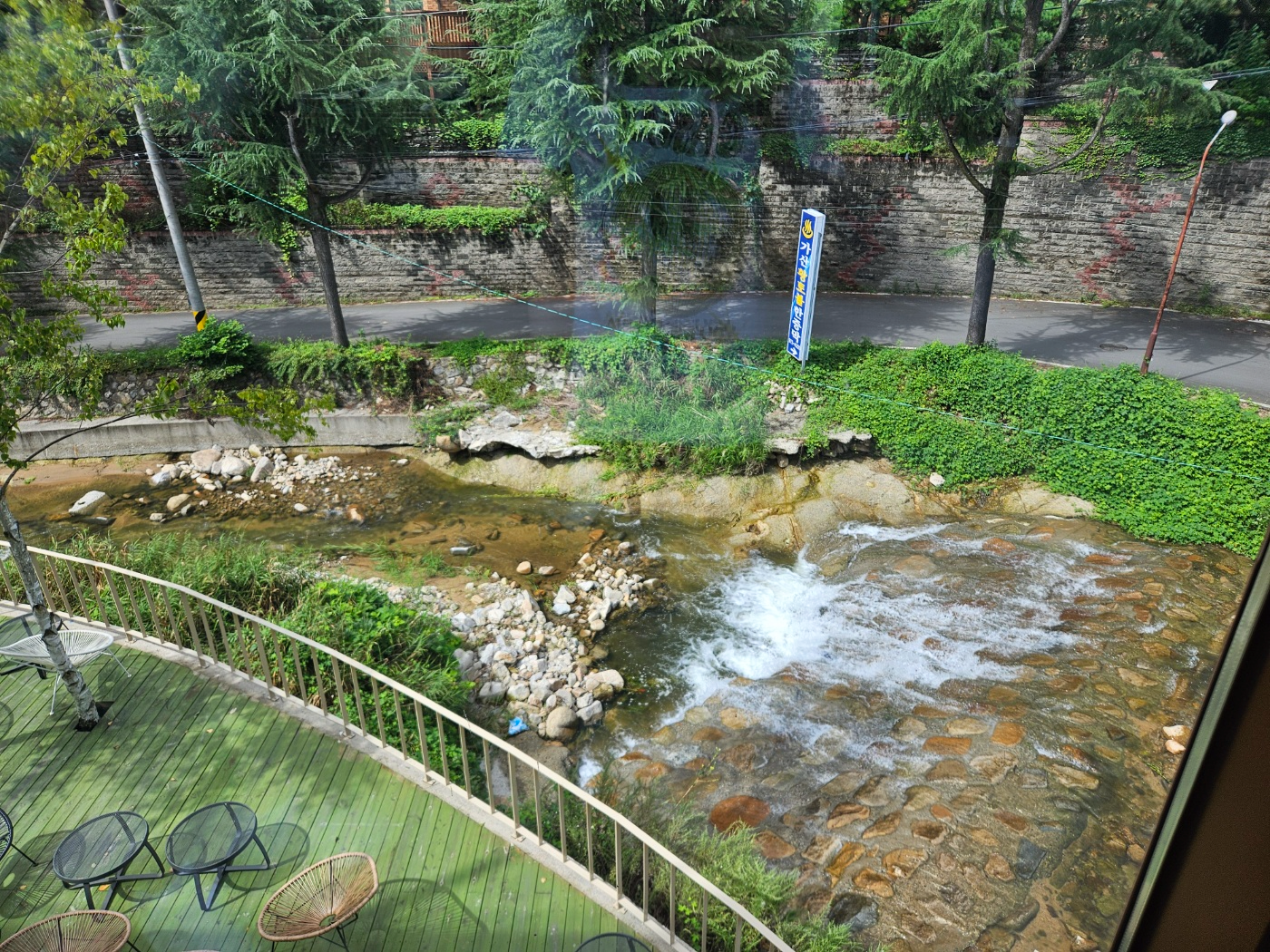 2층테라스에서도 계곡이 보이고 더 좋은 건 건물자체가 햇빛을 막아주고 있어서 모두 그늘이라 뜨겁지도 않고 시원한 바람맞으면서
