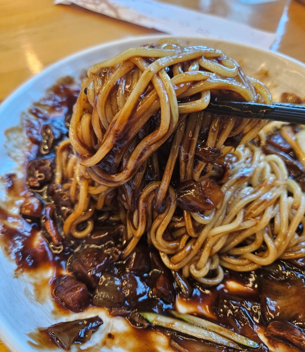 면도 찰지고 쫄깃쫄깃하니 맛있었고 너무 달거나 간이 세지 않고 간의 밸런스가 좋았어요. 짜장소스에 건더기가 푸짐해서 든든하게 먹을 수 있었고 맛은 정말 맛있는 옛날 짜장면맛이에요. 자극적이거나 너무 달지않은 건강한 짜장면의 맛이었습니다. 양도 적당한편!