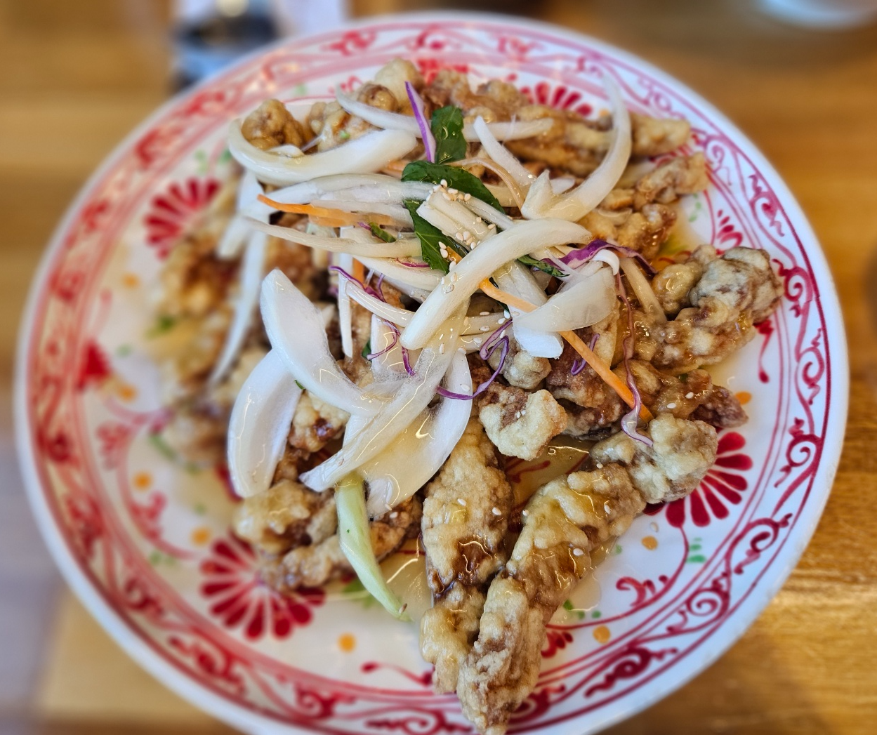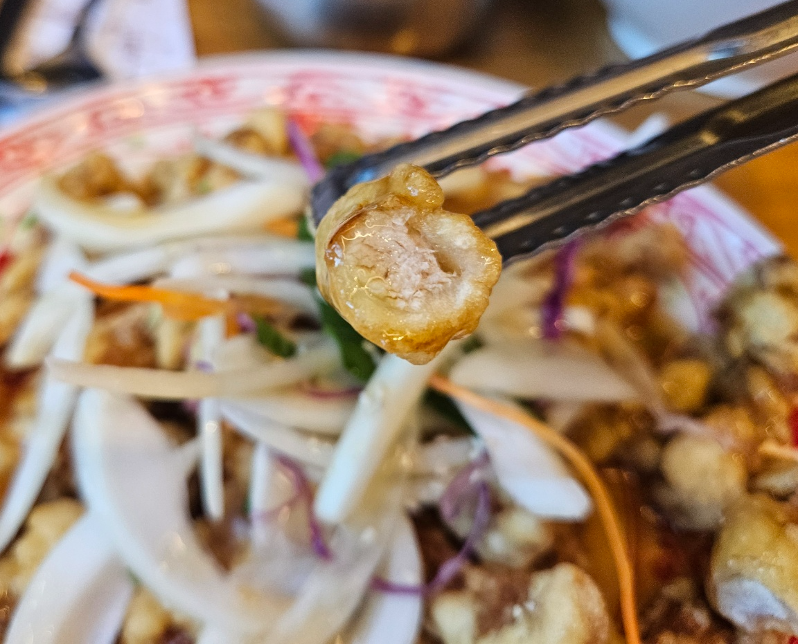 탕수육은 꿀탕수육이라고 되어 있는걸 보니 꿀이들어간 탕수육인 것 같았어요. 튀김옷은 찹쌀튀김이 아니라 옛날 탕수육의 그런 바삭한 튀김이고 소스는 꿀이 들어가서 그런지 달짝지근하면서도 새콤하니 밸런스가 좋았어요. 탕수육 튀김옷은 정말 바삭하고 소스가 부어져 나오는데도 다 먹을 때까지 튀김의 바삭함이 살아 있었어요. 고기는 잡내 없이 깔끔하고 아주 맛이 좋았습니다.