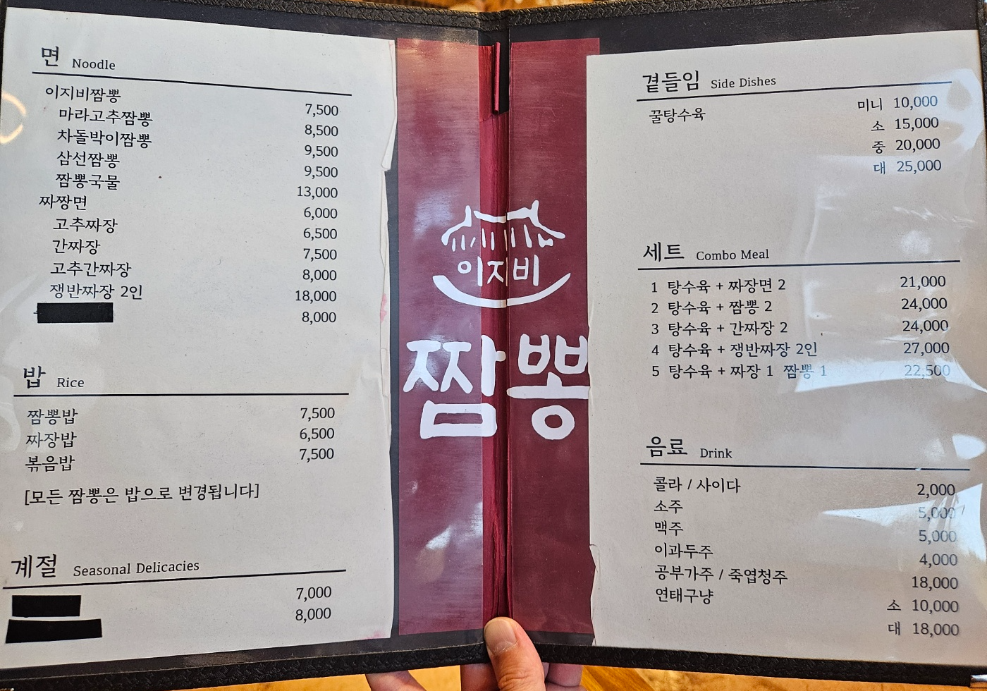 기본 이지비짬뽕 7,500원 짜장면 6,000원 꿀탕수육 미니 10,000원부터 가격대가 비싸지 않고 요즘 중식당 가격에 비하면 저렴한 편이었어요.