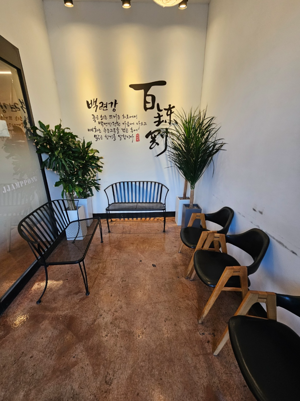 청도 중식 맛집 이지비짬뽕 식당에 들어서면 앉아서 기다리는 곳이 따로 있었어요. 맛집이라면 웨이팅공간은 필수인 것 같네요.