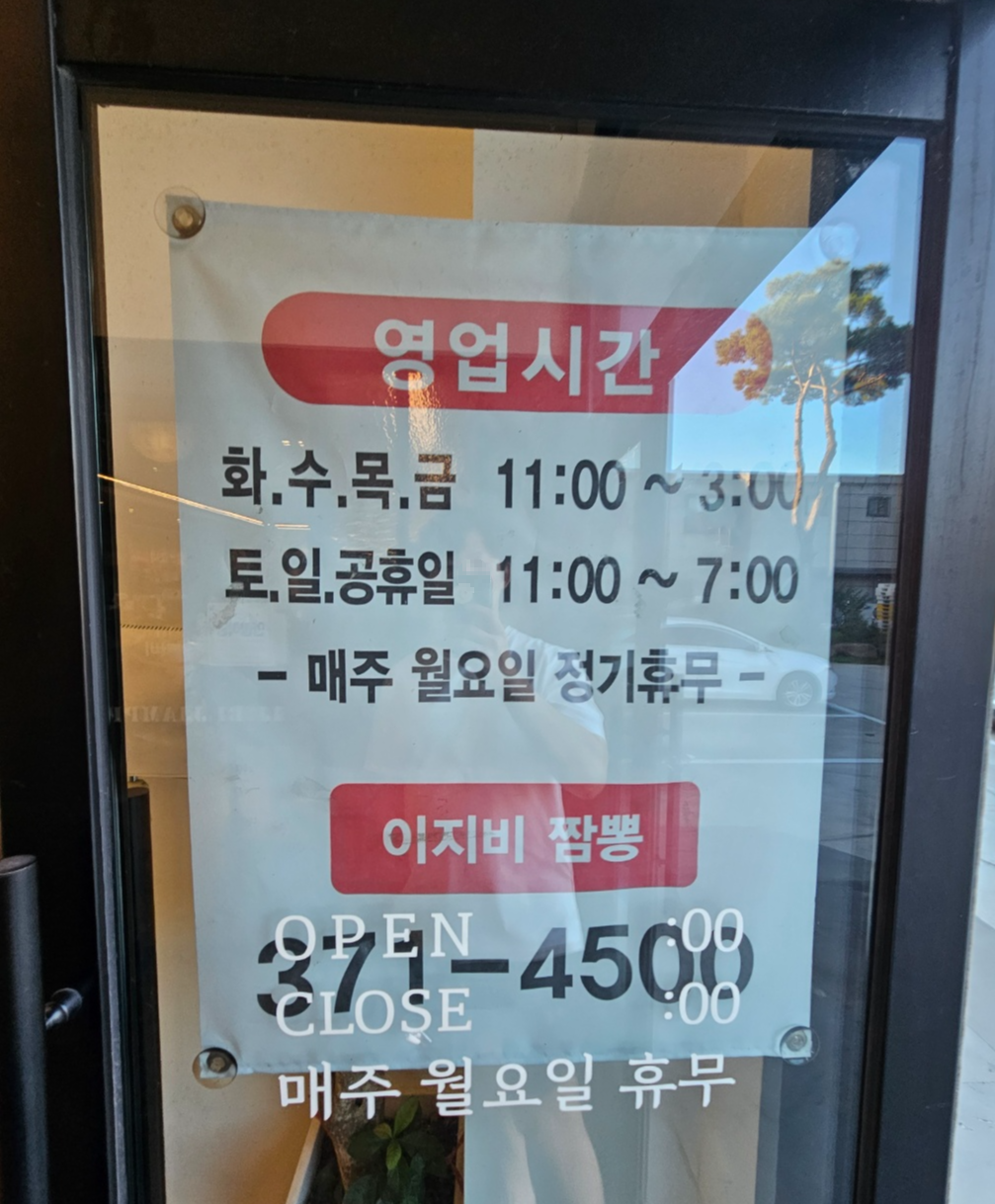 청도 짬뽕맛집으로 유명한 이지비짬뽕점은 가게 앞에 큼지막한 전용 주차장이 있어요. 이른 저녁시간에 방문했는데 손님이 꽤 많았어요. 조금만 더 늦었으면 웨이팅할뻔 했더라고요ㅠㅠ 럭키빅키! 타이밍이 참 좋았습니다.