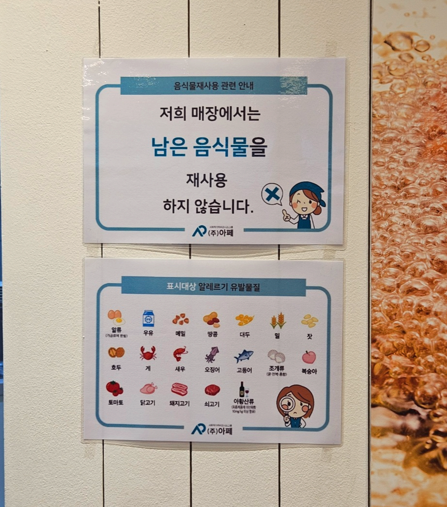 남은 음식을 재사용하지 않으며 매장에서 직접 정성들여서