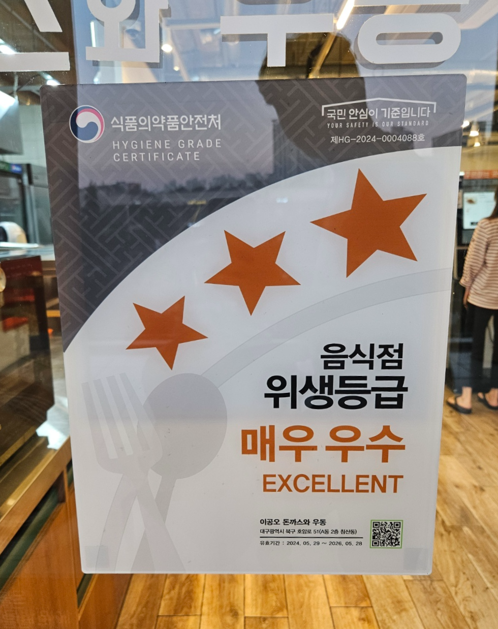 이공오돈까스와우동 일식당은 위생등급도 매우 우수하다고