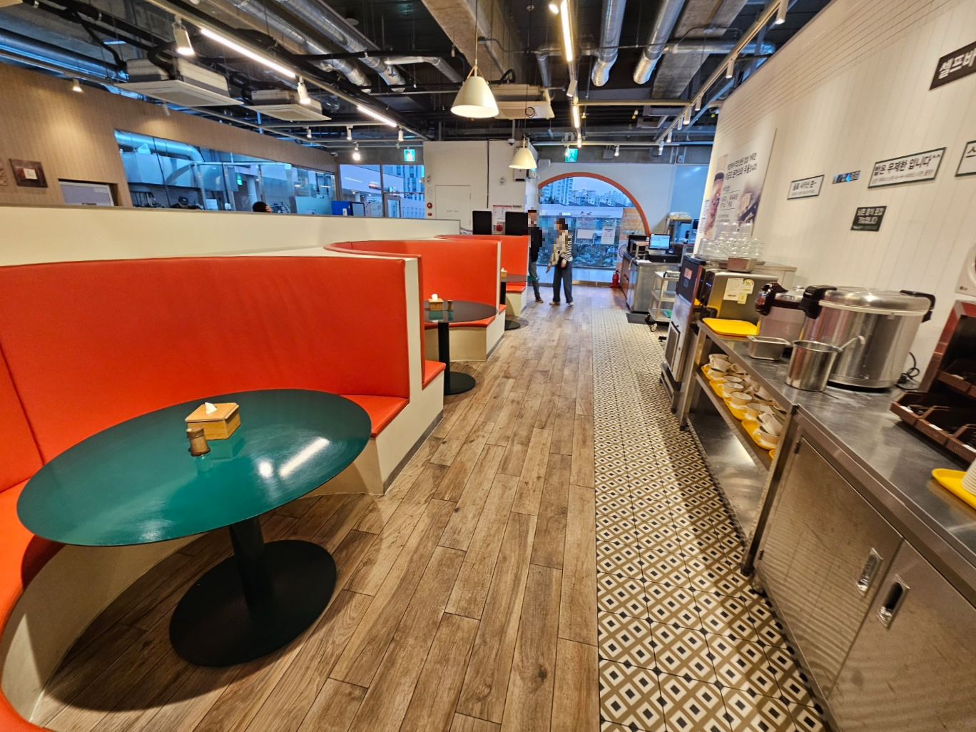 대기하는 의자와 약간 옛날 돈까스식당 느낌이 나는
