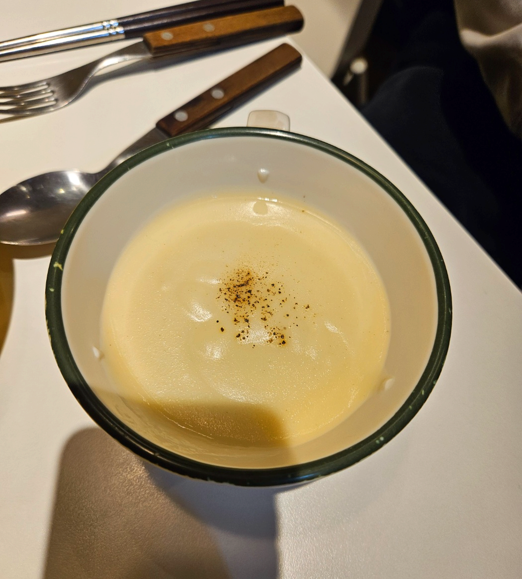 크림스프부터 양껏 떠서 먹어줬어요. ㅎㅎ