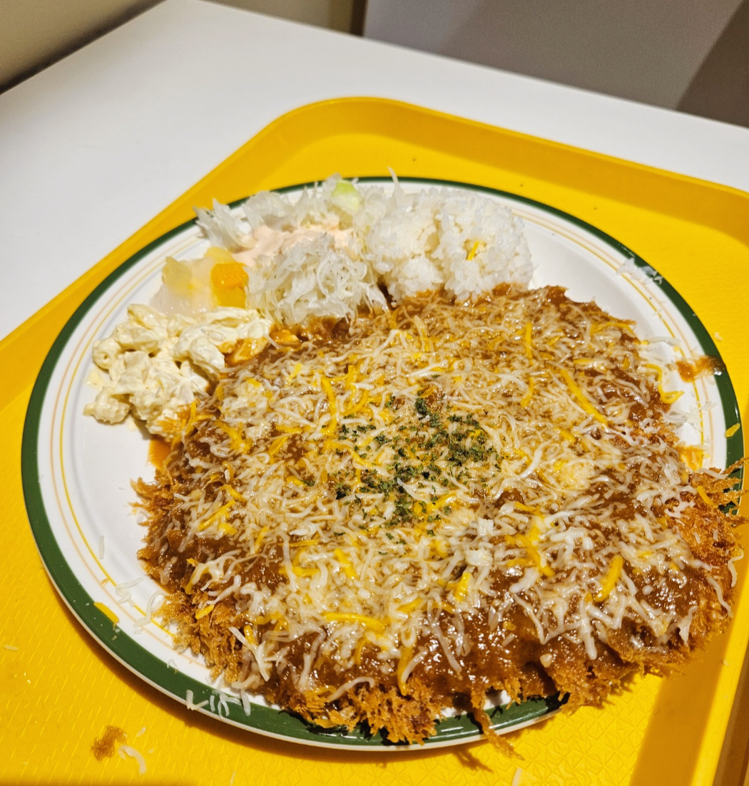 어른 손바닥 2개를 붙인 크기보다 조금 더 컸던 돈까스!