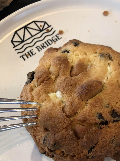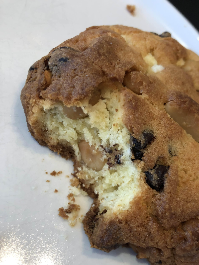 왜관 더브릿지 카페 쿠키는 겉에만 마카다미아와 초코칩이 있는게 아니라 안 속까지 가득 들어있어서 씹는 식감도 좋고 버터쿠키의 풍미가 입안을 자극했어요