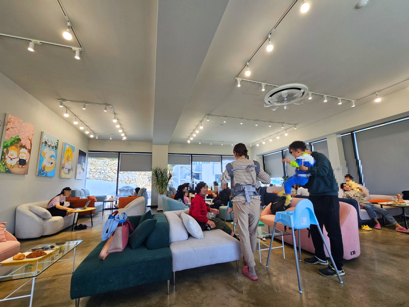 러키더키 대형 베이커리카페 2층에 자리를 잡았어요.
