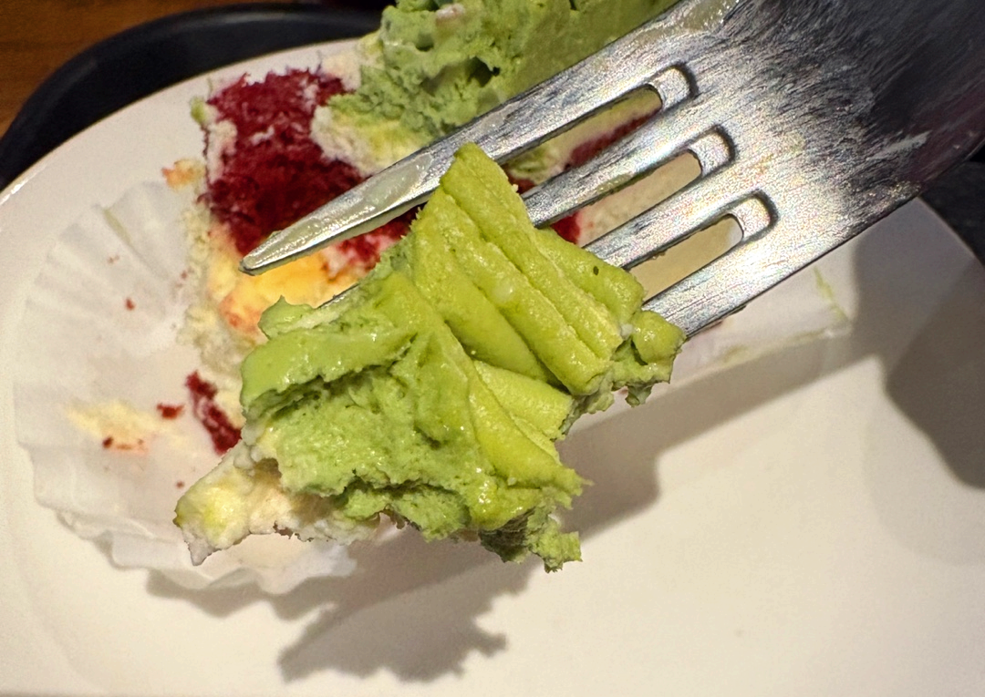 위에서부터 가장 아래쪽까지 한 번에 포크로 먹어봤어요.