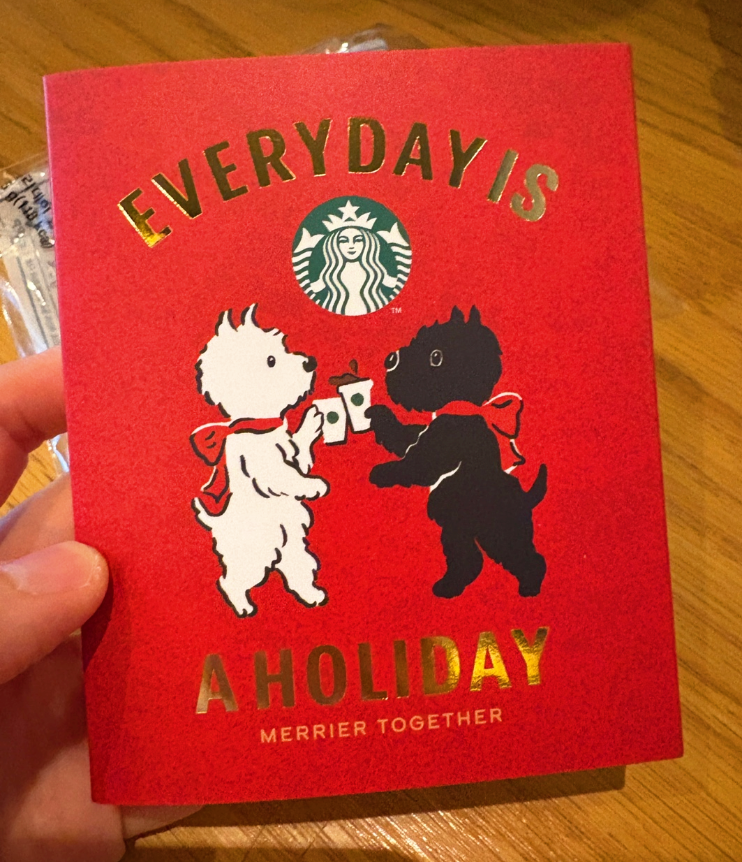 스타벅스 홀리데이 강아지 쿠키 카드 비닐을 벗기니