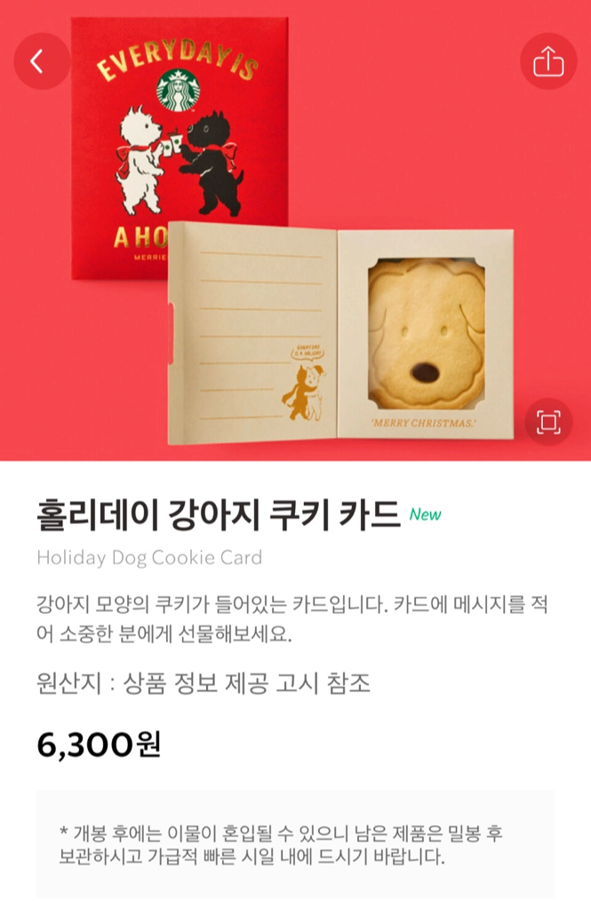 스타벅스 홀리데이 강아지 쿠키 카드는